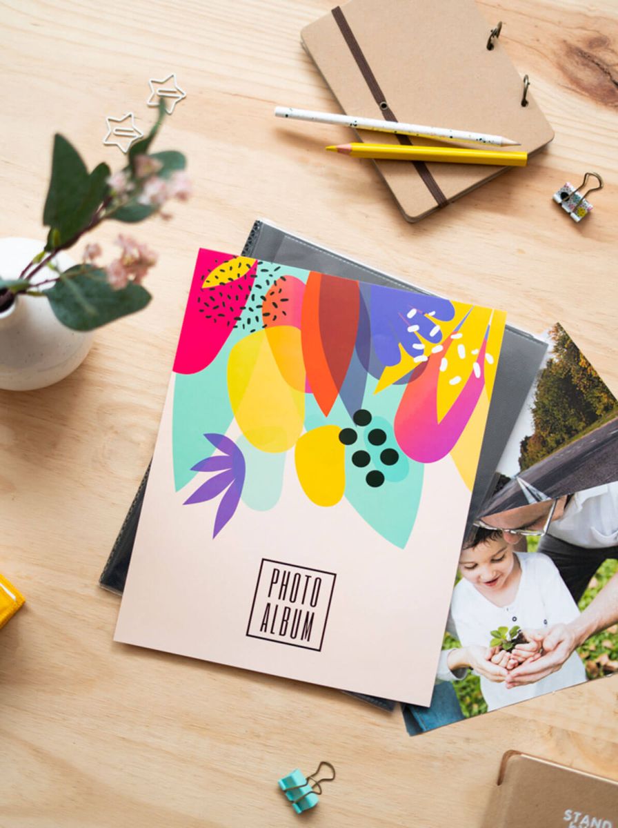 Album na zdjęcia Abstract Summer Album w miękkiej okładcezabezpieczony foliową obwolutą.Jego strony posiadają kieszonkę z folii, która ułatwia umieszczanie fotografii. Album posiada 24 strony na których umieścić możesz48zdjęćw rozmiarze: 13x20cm, 13x18cm, 10x15cm, INSTAX, POLAROID Szczegóły techniczne: Wymiary zewnętrzne: 22x28 cm Wymiary strony:21,5x27 cm Okładka: miękka, tworzywo sztuczne Karty: miękkie, tworzywo sztuczne, kieszenie Rodzaj albumu: zdjęcia wsuwane Wykończenie albumu: klejony Kolor kart: czarny