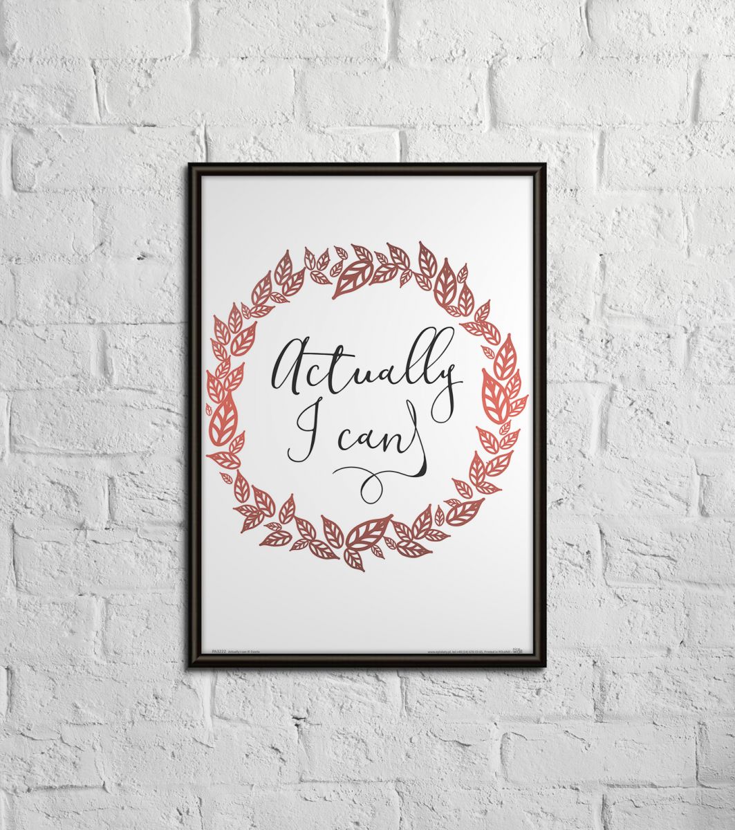 Plakat na ścianę, zatytułowany Actually i can Ciekawy i oryginalny plakat na ścianę. Wyprodukowany na papierze o wysokiej gramaturze w cyfrowej jakości. Plakat wykonany przez polskiego producenta. Świetnie nadaje się do oprawienia w ramy lub antyramy. Specyfikacja papier satynowy 220g/m2 druk cyfrowy wymiary plakatu 29,7x42 cm