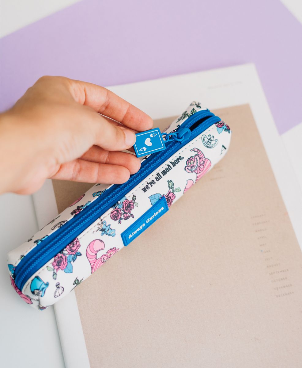 Alicja w Krainie Czarów piórnik Piórnik z grafiką inspirowaną filmem Alicja w Krainie Czarów, z ozdobnym suwakiem i motywem karty praktyczny i stylowy dodatek do szkoły. Szczegóły techniczne Motyw: Alicja w Krainie Czarów Materiał: poliester Zapięcie: suwak z zawieszką Oryginalny, licencjonowany produkt gwarancja autentyczności i wysokiej jakości.