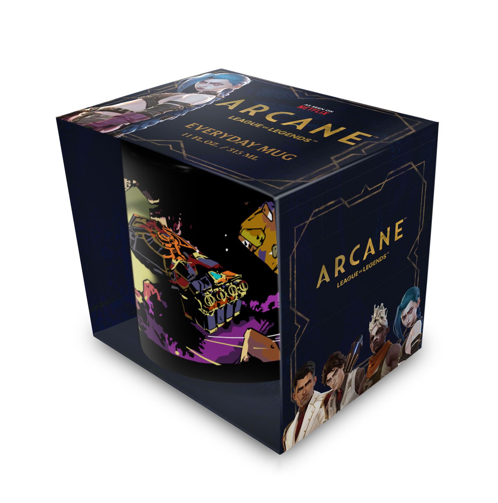 Arcane VI - czarny kubek Numer katalogowy: MGB2405041 Producent: Pyramid International Pojemność: 315 ml Czarny kubek ceramiczny z uchem ozdobiony został dynamiczną grafiką z Vi inspirowaną światem Arcane. Nadruk ma mocny, komiksowy charakter i świetnie wygląda na czarnym tle, przez co całość od razu zwraca uwagę. Model ma wygodny, klasyczny kształt, więc dobrze sprawdza się w codziennym użytkowaniu. Pojemność 315 ml pasuje do kawy, herbaty i innych ciepłych napojów. To kubek z naprawdę wyrazistym klimatem, który dobrze oddaje energię i styl tej postaci. Rodzaj: czarny kubek ceramiczny z uchem Motyw: Arcane Pojemność: 315 ml Oryginalny produkt na oficjalnej licencji Arcane.