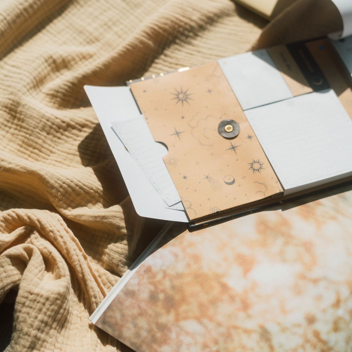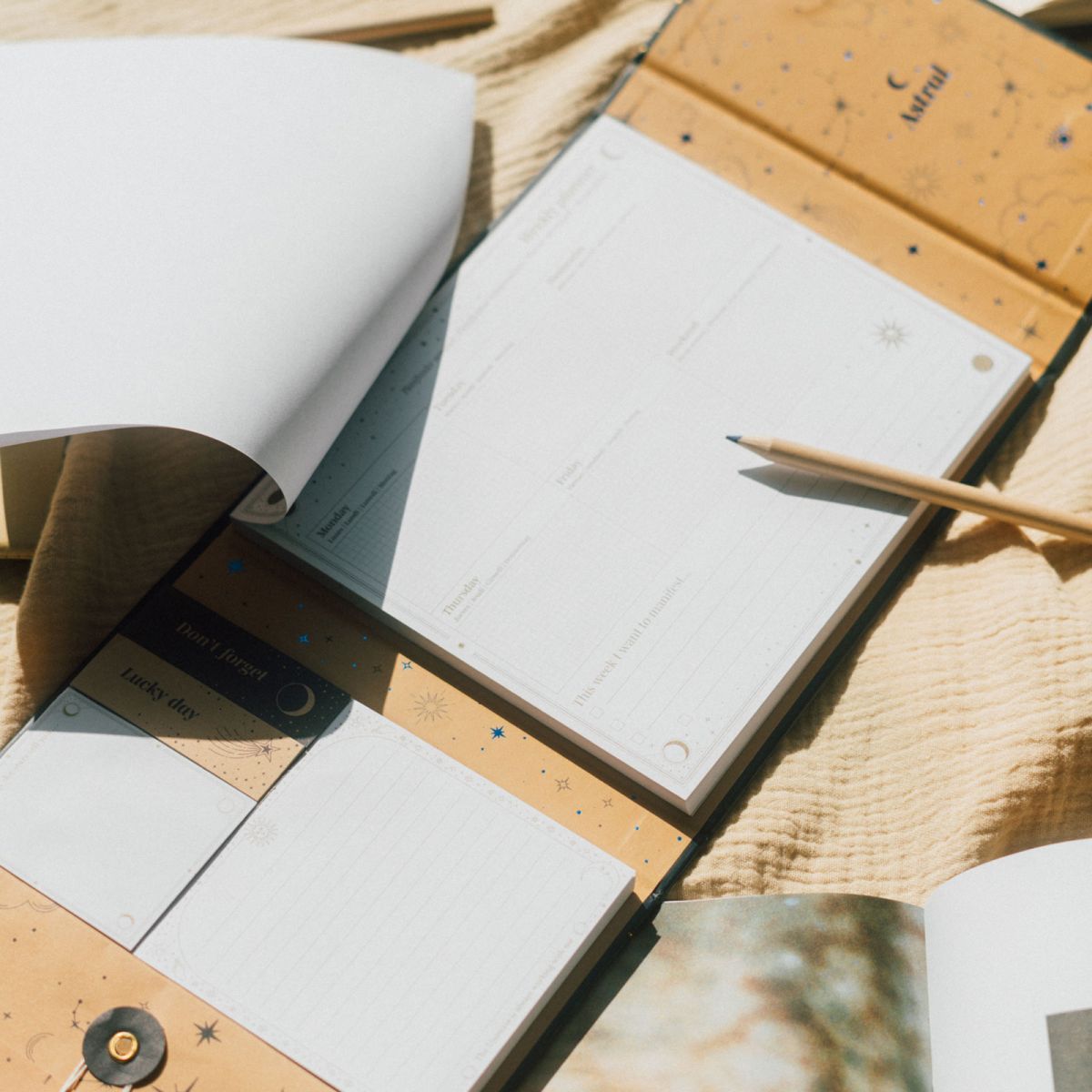 Szczegóły techniczne Wymiary: 190 x 167 x 23 mm (złożony), 500 mm (otwarty) Materiał: tektura, zamknięcie na magnes Elementy zestawu: blok terminarza, notatnik, notesy samoprzylepne, koperta zamykana na sznurek Licencjonowany produkt Oryginalny produkt Astral, perfekcyjny na prezent lub jako narzędzie do codziennej organizacji.