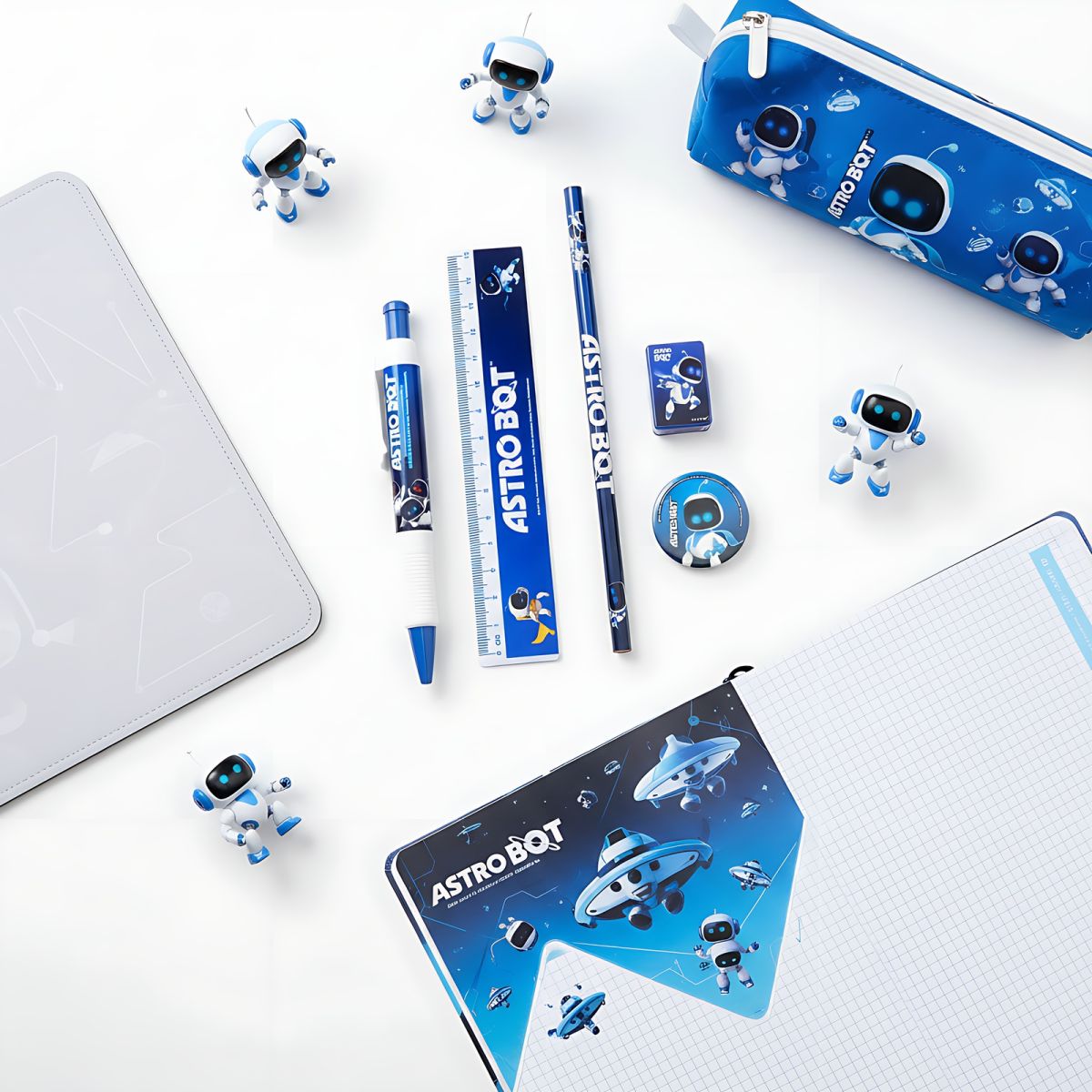 Astro Bot Crew - przybory szkolne Numer katalogowy: SR2404806 Producent: Pyramid International Zestaw Astro Bot Crew zawiera podstawowe przybory szkolne zamknięte w kompaktowym opakowaniu. Wyrazista grafika inspirowana światem Astro Bot nadaje mu nowoczesny, charakterystyczny wygląd. Produkt jest poręczny, lekki i praktyczny do codziennego użytkowania. Dzięki estetycznej oprawie świetnie sprawdza się jako element szkolnej wyprawki. Szczegóły techniczne Wymiary opakowania: 8,5 x 21 cm Motyw: Astro Bot Crew Typ: przybory szkolne Oryginalny zestaw szkolny na oficjalnej licencji Astro Bot, gwarantujący pełną zgodność z marką i wysoką jakość wykonania potwierdzoną licencją.