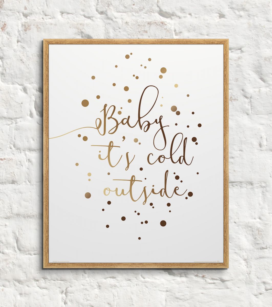 Plakat na ścianę, zatytułowany Baby it's cold outside Ciekawy i oryginalny plakat na ścianę. Wyprodukowany na papierze o wysokiej gramaturze w cyfrowej jakości. Plakat wykonany przez polskiego producenta. Świetnie nadaje się do oprawienia w ramy lub antyramy. Specyfikacja papier satynowy 220g/m2 druk cyfrowy wymiary plakatu 40x50 cm