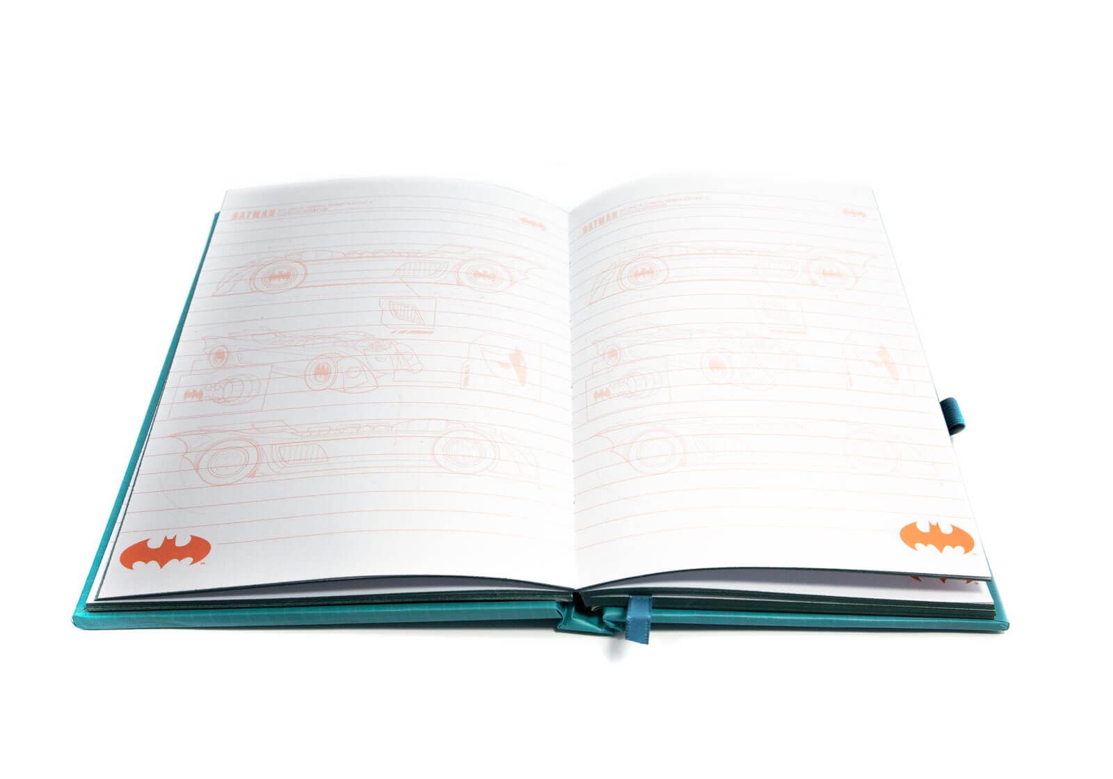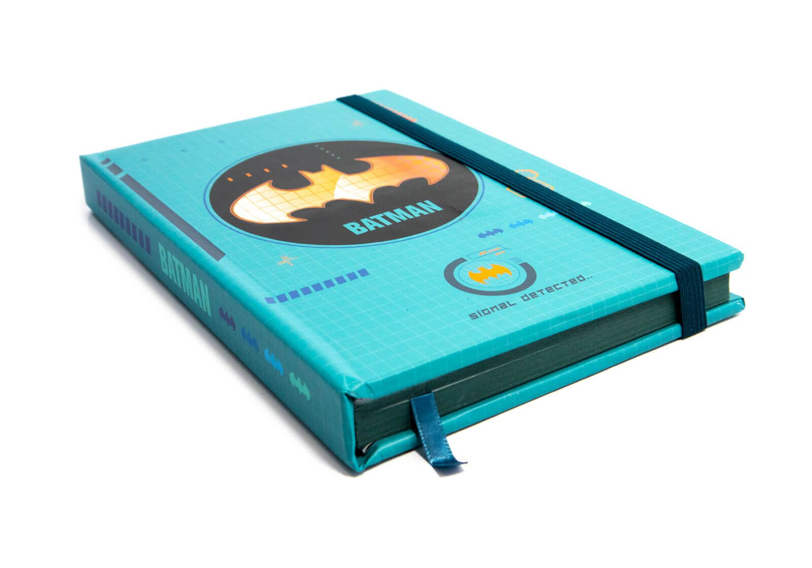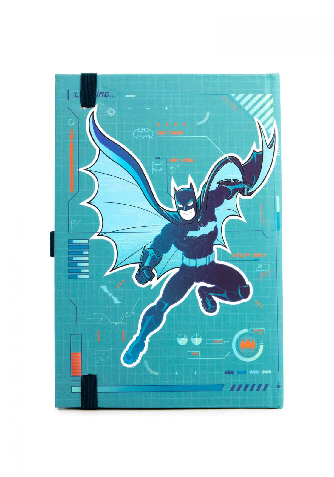 Notes Batman Bat Tech Świetny gadżet który wykorzystasz zarówno w szkole, jak i w pracy. Idealnie sprawdzi się też jako dziennik czy pamiętnik. Twarda okładka, zadrukowana fotografią o intensywnych i wyrazistych barwach. 120 kartek w szeroką linie ozdobione grafiką z głównego motywu. Zamykany na kolorową gumkę. Posiada oficjalną licencję producenta, to oryginalny gadżet! Wymiary zeszytu: 14,8x21 cm