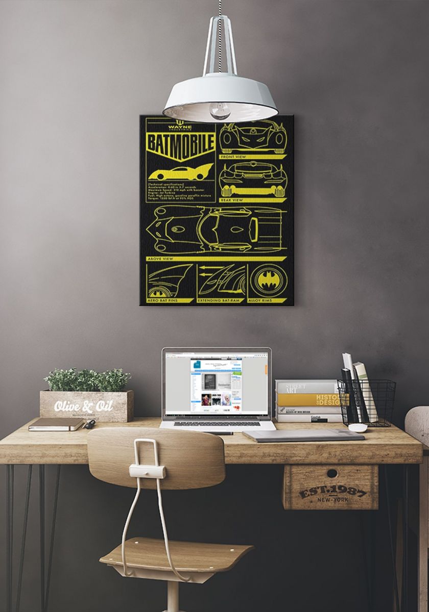 Obraz na ścianę noszący nazwę Batman (Batmobile). Szukasz oryginalnej, ekskluzywnej dekoracji na ścianę? Ten obraz jest dla Ciebie! wyraziste barwy i doskonała ostrość nadruku., obrazy charakteryzuje wysokie nasycenie barw i ostrość, nie sposób oderwać od nich wzrok. Kolory utrzymują się przez długie lata. Doskonałej jakości płótno to gwarancja naturalnego wyglądu i trwałości obrazu.