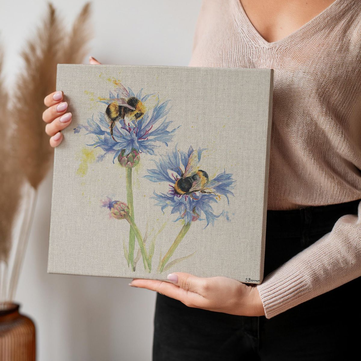 Bees on Cornflowers - obraz na płótnie