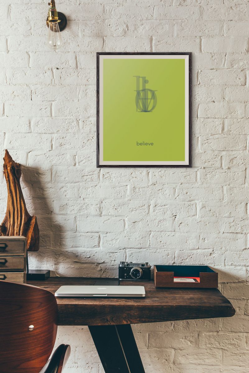 Plakat typograficzny na ścianę, zatytułowany Believe Ciekawy i oryginalny plakat na ścianę. Wyprodukowany na papierze o wysokiej gramaturze w cyfrowej jakości. Plakat wykonany przez polskiego producenta. Świetnie nadaje się do oprawienia w ramy lub antyramy. Specyfikacja papier satynowy 220g/m2 druk cyfrowy wymiary plakatu 40x50 cm