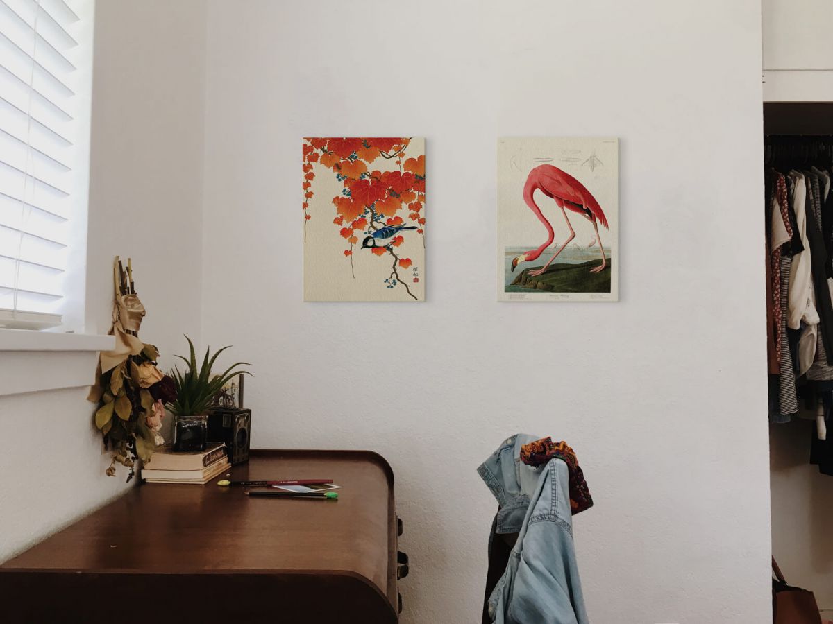 Bird and Red Ivy - obraz na płótnie