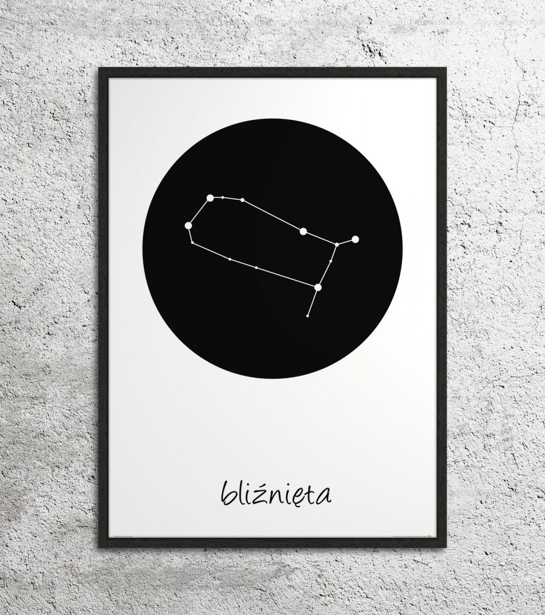 Plakat z mapą na ścianę, zatytułowany Bliźnięta konstelacja w kole Ciekawy i oryginalny plakat na ścianę. Wyprodukowany na papierze o wysokiej gramaturze w cyfrowej jakości. Plakat wykonany przez polskiego producenta. Świetnie nadaje się do oprawienia w ramy lub antyramy. Specyfikacja papier satynowy 220g/m2 druk cyfrowy wymiary plakatu 50x70 cm