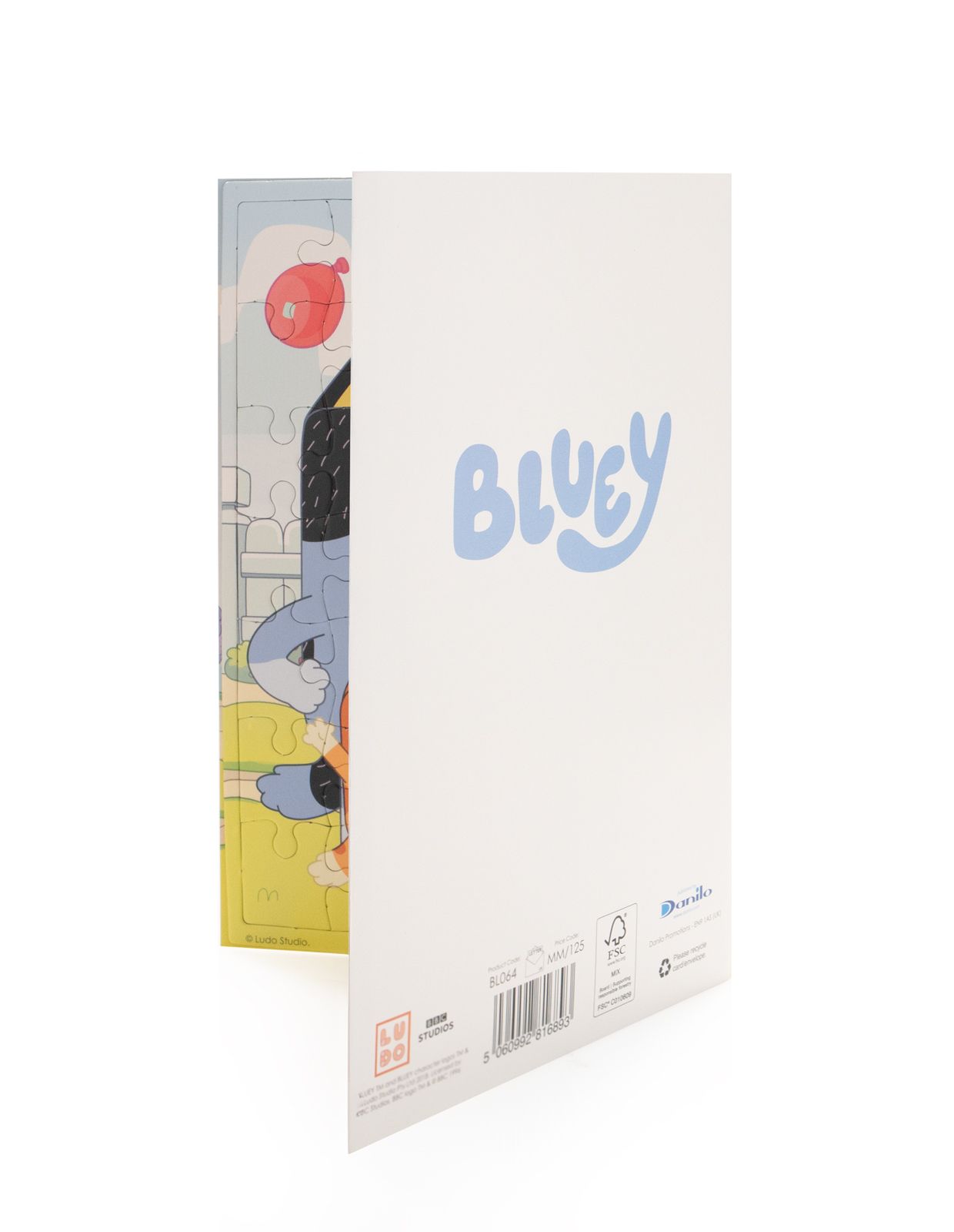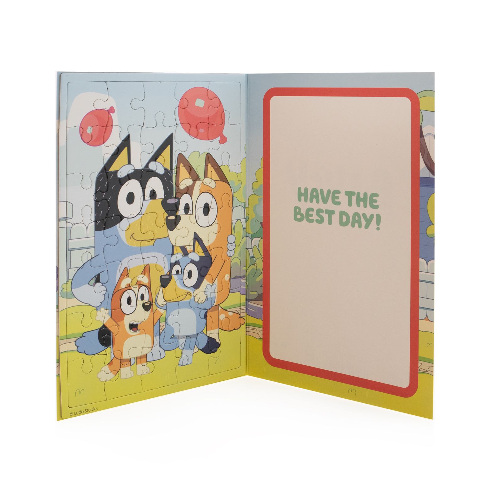 Bluey - kartka urodzinowa Klasyczna kartka urodzinowa z bohaterką Bluey to uniwersalny wybór dla dzieci. Kolorowy nadruk i gotowe życzenia wewnątrz sprawiają, że kartka jest od razu gotowa do wręczenia. Sprawdza się jako dodatek do prezentu lub samodzielny upominek dla małych fanów tej bajki. Szczegóły produktu: Format: 15 x 23 cm Motyw: Bluey Wnętrze: z nadrukowanymi życzeniami Oficjalny produkt z licencją Licencjonowana kartka Bluey - oryginalny produkt, popularny wśród najmłodszych odbiorców.