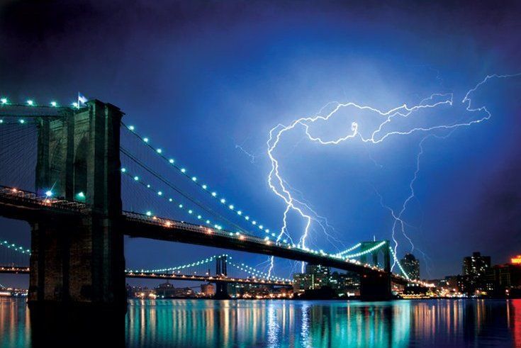 Plakat na ścianę Brooklyn Bridge (New York, Lightning)