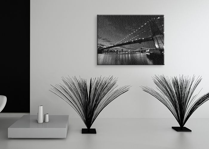 Obraz na płótnie pod tytułem Brooklyn Bridge nocą BW. Autorstwa: Dell Szukasz oryginalnego, ekskluzywnego motywu na ścianę? Damy Ci to czego potrzebujesz! Głębokie, nasycone barwy, obraz ma intensywne, żywe kolory, jest przy tym bardzo ostry, każdy przechodząc obok zwróci na niego uwagę. Barwy są trwałe, cieszą oko długie lata. Płótno najlepszej jakości, obraz naniesiony na płótno bawełniane 300g/m2, delikatne a zarazem niezwykle trwałe, świetnie rozkłada się na nich farba a struktura płótna jest naturalna. Lubisz markowe obrazy? ten jest oryginalny, to wydanie posiadające licencję. Kolory wiecznie żywe, powierzchnia jest lakierowana dlatego będziesz cieszyć się żywymi kolorami przez dziesięciolecia. Solidna blejtrama, blejtrama na której naciągane jest płótno wykonana jest z naturalnego, sosnowego drewna, jest mocna i gruba. Otrzymasz więc obraz mocny i trwały. Zadrukowane boki, każdy egzemplarz posiada zadrukowane boki, dzięki temu możesz go powiesić na ścianie bez dodatkowej oprawy. Polski producent, kupując polskie produkty wspierasz rodzimy rynek. Bezpieczna przesyłka Dbamy o bezpieczeństwo obrazów podczas transportu. Każda przesyłka jest ubezpieczona a obraz zapakowany jest w solidne, specjalnie zaprojektowane pudełko.