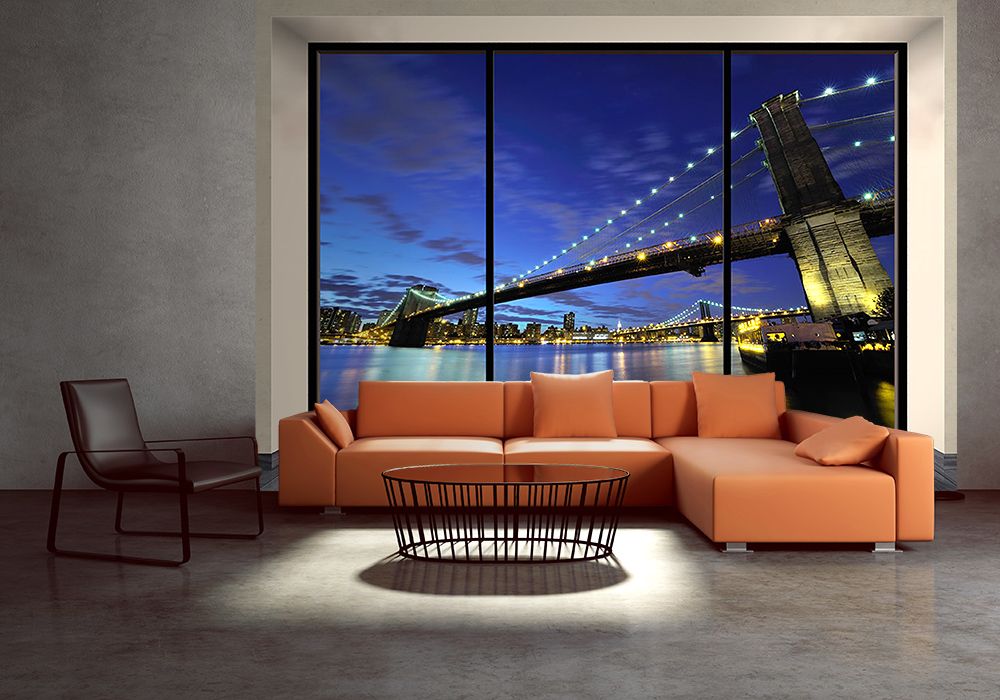 Brooklyn Bridge nocą (window) - fototapeta