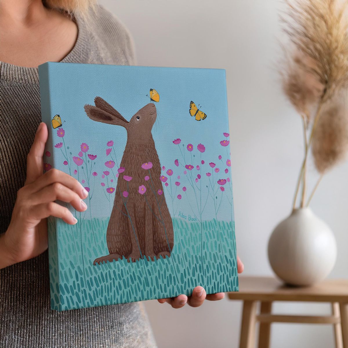 "Butterfly Bartering" to piękny obraz, który przedstawia scenę z zającem otoczonym motylami na tle kolorowych kwiatów. Delikatne przejścia kolorów i staranne detale tworzą harmonijną kompozycję, wprowadzającą spokój i radość. Wykonany techniką akrylu na płótnie, obraz wyróżnia się trwałością i głębią barw. Doskonały do nowoczesnych wnętrz, gdzie wniesie naturalny urok i pozytywną energię. Produkt jest oryginalny i posiada licencję producenta, co potwierdza jego wysoką jakość i unikalność. Stylowy obraz wydrukowany na grubym bawełnianym płótnie. Krosna wykonane są z sosnowego drewna co stanowi solidną i efektowną całość. Po wyjęciu z opakowania obraz można od razu powiesić na ścianie. Dbamy o każdy detal dlatego obraz jest solidny i piękny.Obraz jest ostry a barwy nasycone. Boki są zadrukowane dlatego dodatkowa oprawa jest zbędna. Płótno jest trwałe i posiada interesującą fakturę. Krosna wykonane z sosnowego drewna.
