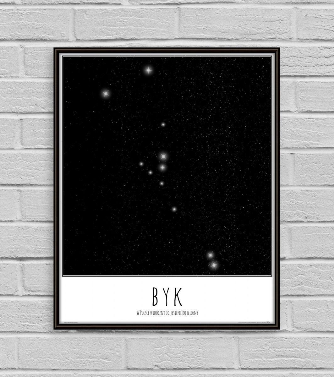 Plakat z mapą na ścianę, zatytułowany Byk konstelacja gwiazd z opisem Ciekawy i oryginalny plakat na ścianę. Wyprodukowany na papierze o wysokiej gramaturze w cyfrowej jakości. Plakat wykonany przez polskiego producenta. Świetnie nadaje się do oprawienia w ramy lub antyramy. Specyfikacja papier satynowy 220g/m2 druk cyfrowy wymiary plakatu 40x50 cm