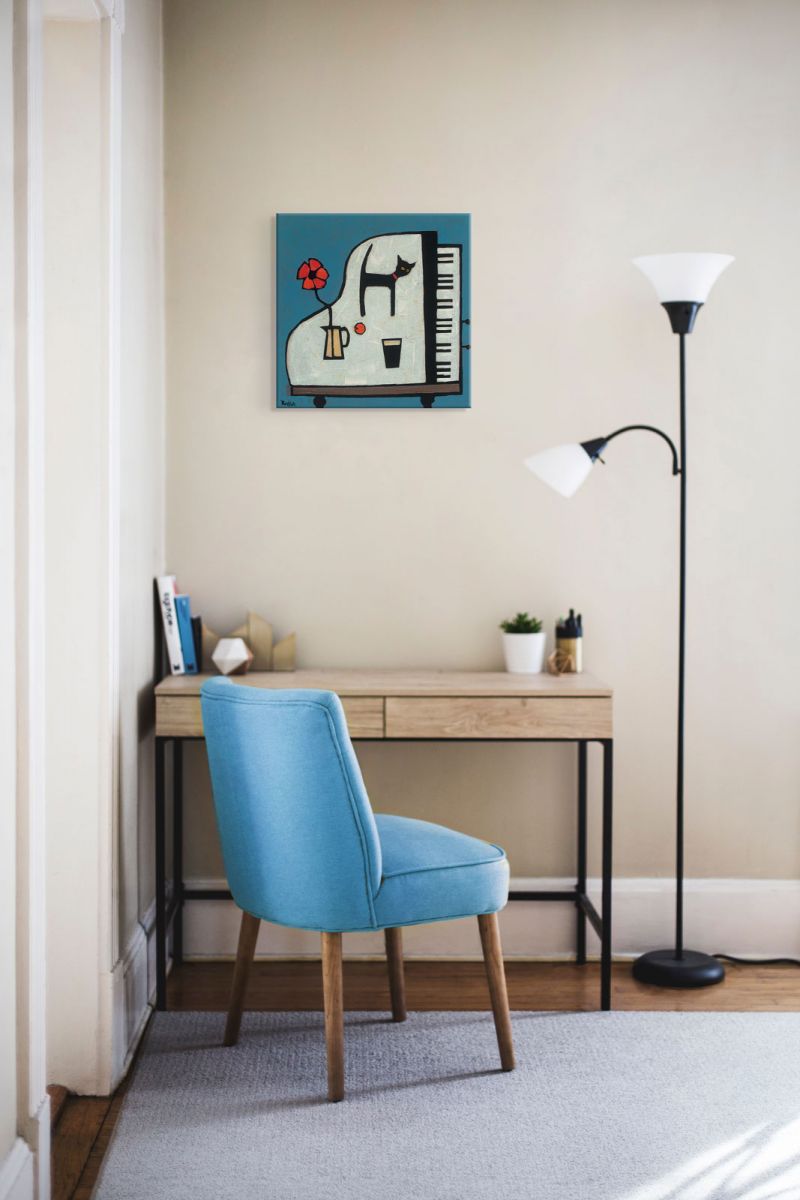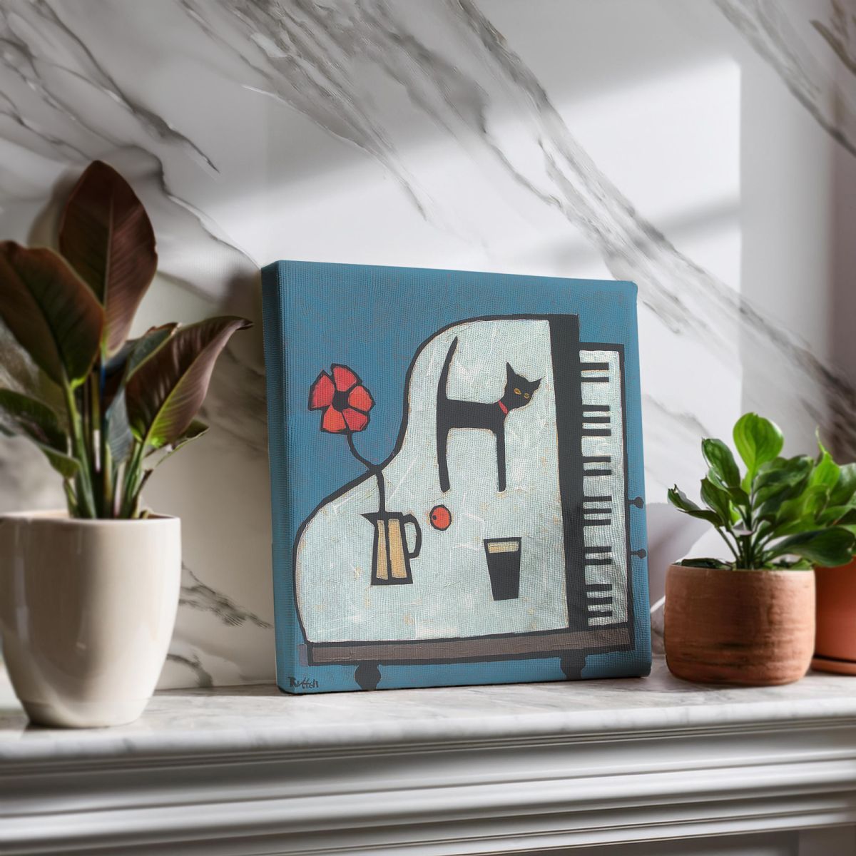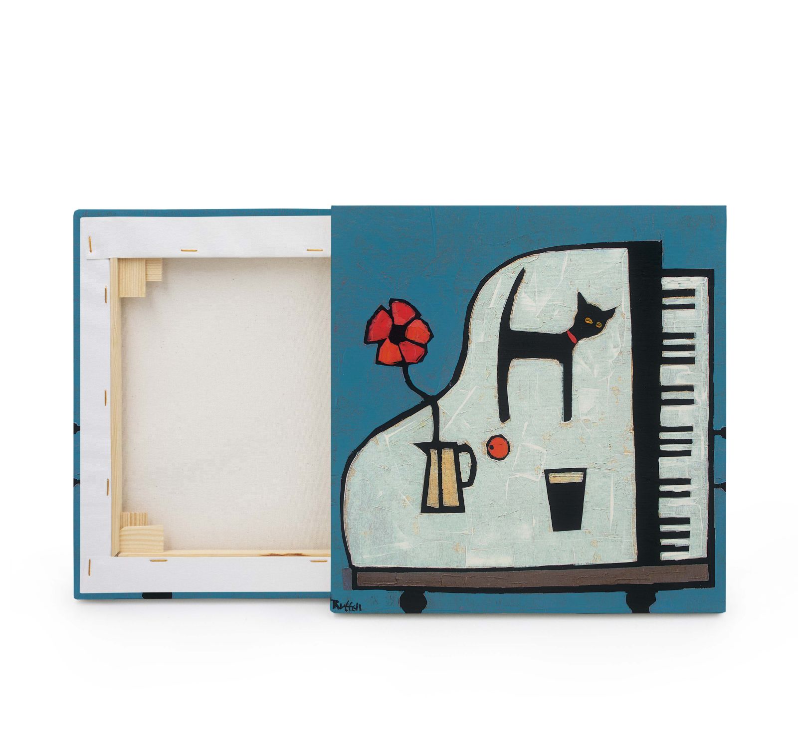 Cat On Piano obraz na płótnie naciągnięty na sosnowe krosna. Obraz jest przygotowany do powieszenia na ścianę od razu po wyjęciu z opakowania. Dbamy o każdy detal dlatego obraz jest solidny i piękny.