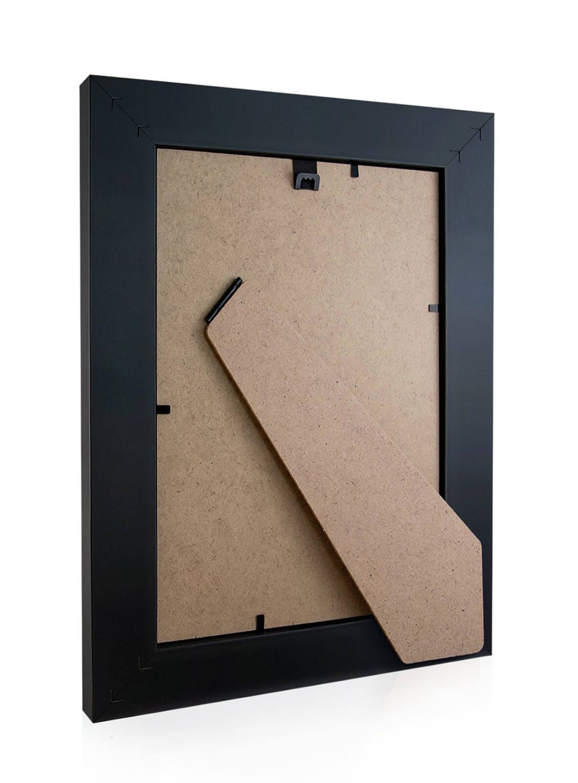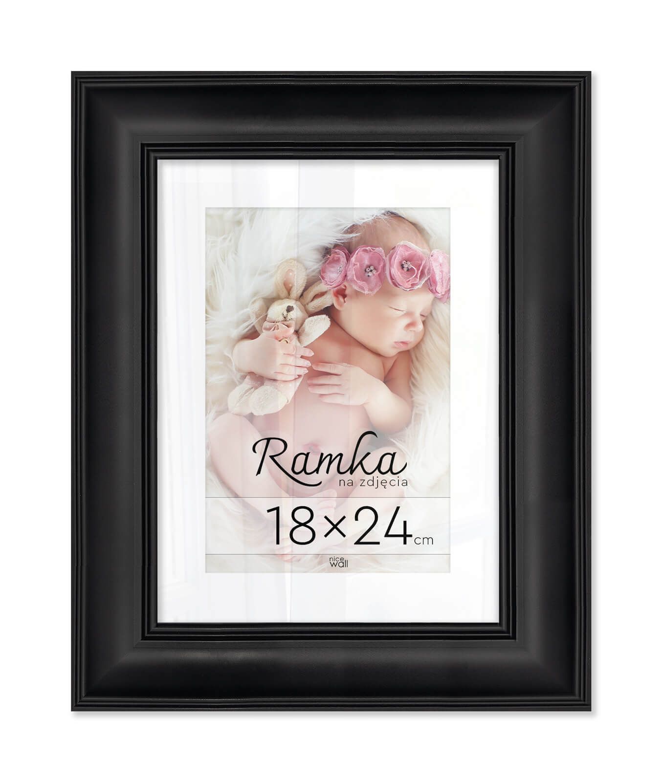 Czarna ramka na zdjęcia 18x24 cm z podpórką Eleganckie ramki do oprawy plakatów, zdjęć i rysunków. Wykonane zpłyty pilśniowej, polistyrenu i lekkiej, przejrzystej pleksy 1 mm. Ramę można powiesić w pionie lub poziomie. Posiadają na plecach przymocowaną podpórkę, dzięki której można położyć oprawione zdjęcie na stojąco. Każdy egzemplarz jest zafoliowany. Posiadającertyfikat FSC. Wyprodukowanew Polsce. Wymiary ramy: 18x24 cm. Wymiary profilu: front 4 cm, bok 1,5 cm,