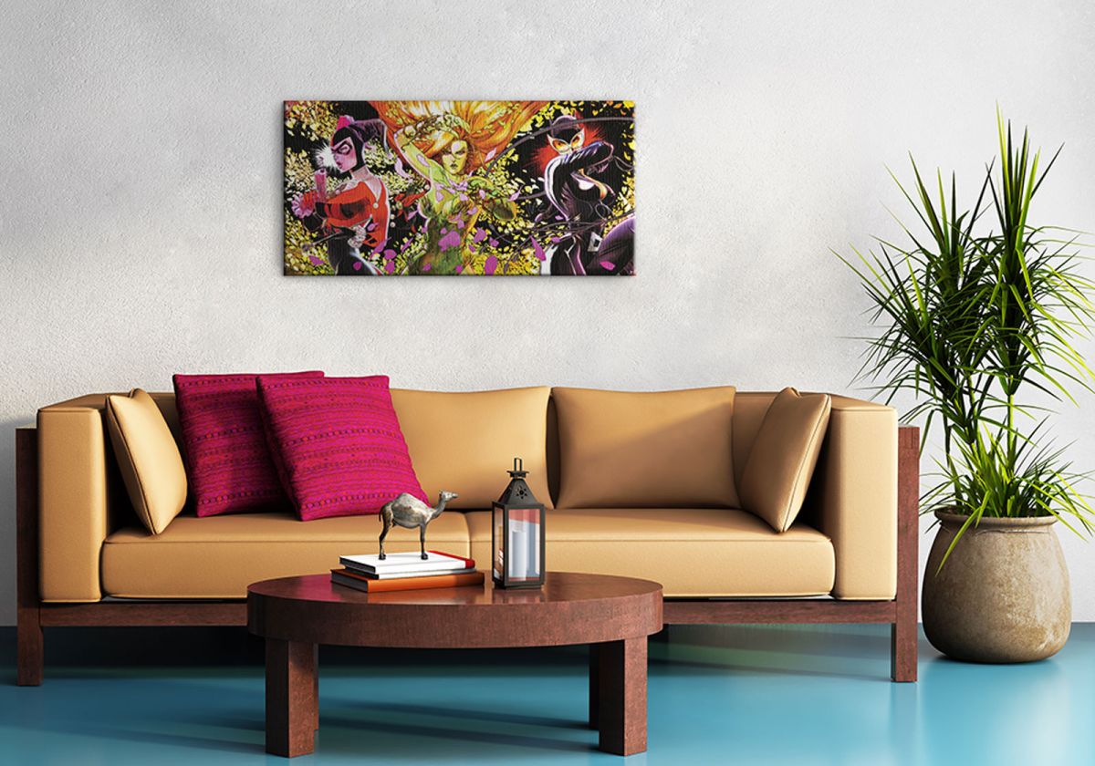 Obraz na ścianę noszący nazwę DC Comics (Ladies). Szukasz oryginalnej, ekskluzywnej dekoracji na ścianę? Ten obraz jest dla Ciebie! fantastyczne kolory i rewelacyjna ostrość., obrazy charakteryzuje wysokie nasycenie barw i ostrość, nie sposób oderwać od nich wzrok. Kolory utrzymują się przez długie lata. Doskonałej jakości płótno to gwarancja naturalnego wyglądu i trwałości obrazu.