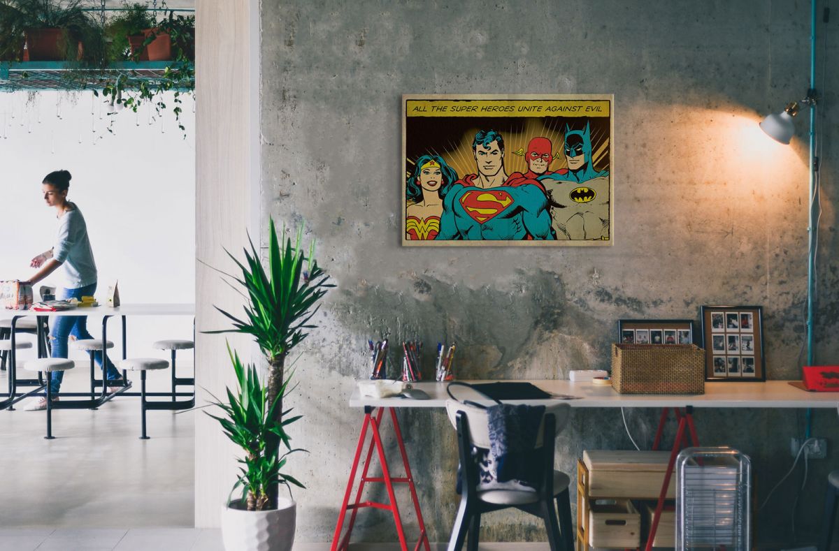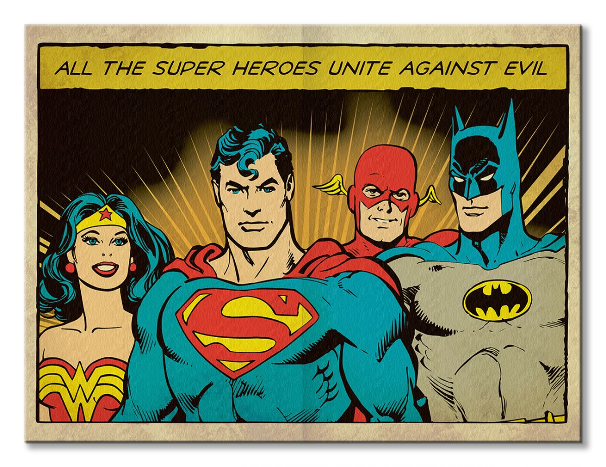 Obraz na ścianę noszący nazwę DC Comics (Unite Against Evil). Szukasz oryginalnej, ekskluzywnej dekoracji na ścianę? Ten obraz jest dla Ciebie! doskonała jakość barw i jakość wykonania., obrazy charakteryzuje wysokie nasycenie barw i ostrość, nie sposób oderwać od nich wzrok. Kolory utrzymują się przez długie lata. Bawełniane płótno wysokiej jakości gwarantuje świetne odwzorowanie i trwałość obrazu.