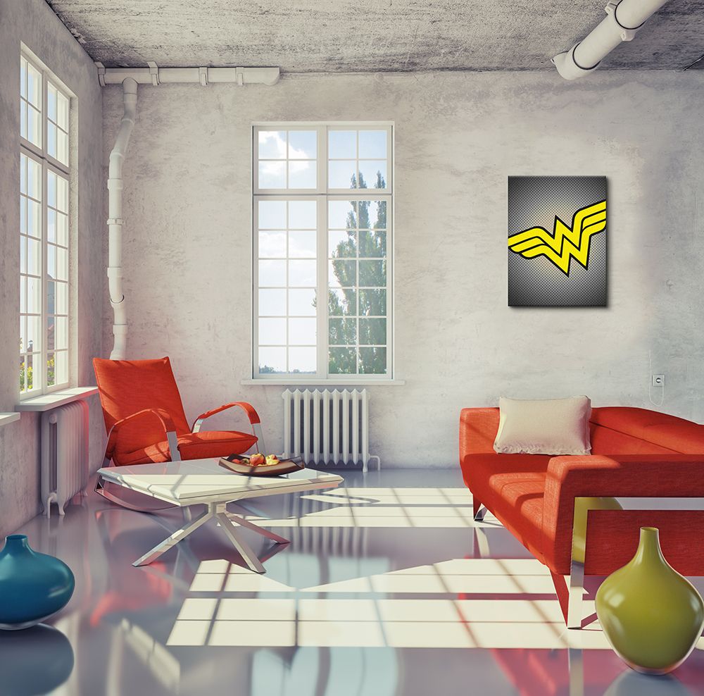 Obraz na ścianę noszący nazwę Dc Comics (Wonder Woman Symbol). Autorstwa: nieznanego Szukasz oryginalnej, ekskluzywnej dekoracji na ścianę? Ten obraz jest dla Ciebie! nasycone kolory i doskonała jakość., obrazy charakteryzuje wysokie nasycenie barw i ostrość, nie sposób oderwać od nich wzrok. Kolory utrzymują się przez długie lata. Mocne bawełniane płótno wygląda naturalnie i oddaje charakter autentyczności obrazu.
