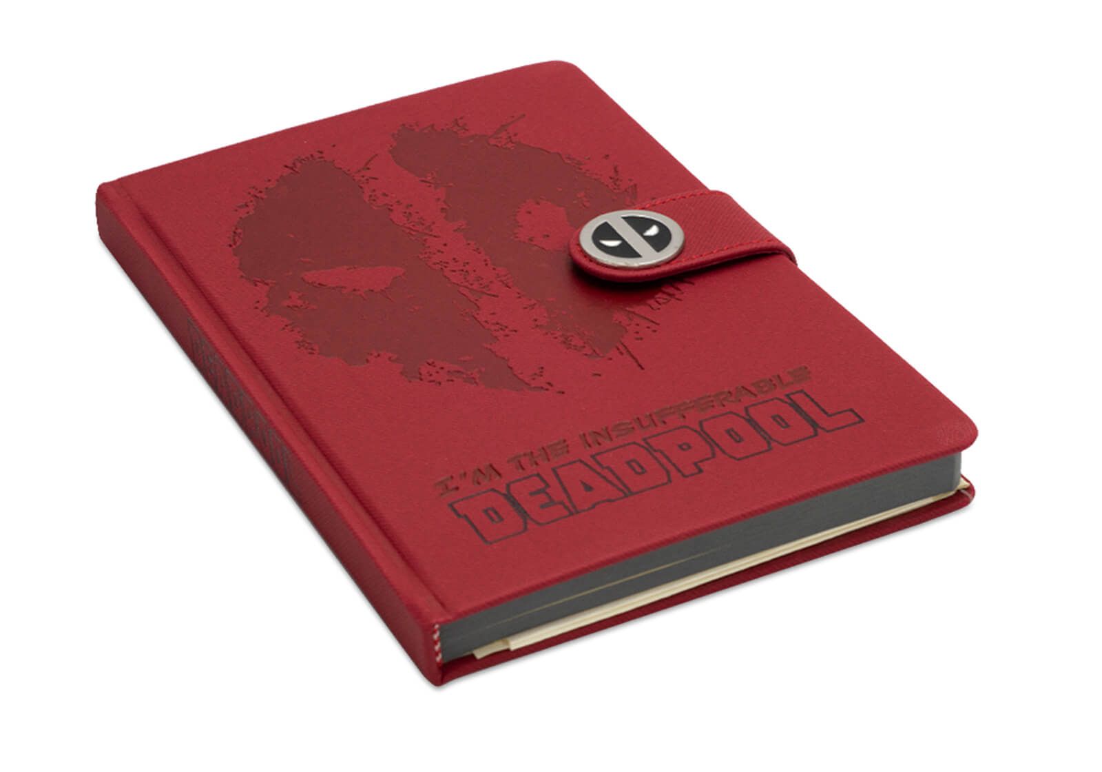Notes Deadpool Splat Świetny gadżet który wykorzystasz zarówno w szkole, jak i w pracy. Idealnie sprawdzi się też jako dziennik czy pamiętnik. Twarda okładka, zadrukowana fotografią o intensywnych i wyrazistych barwach. 120 kartek w szeroką linie ozdobione grafiką z głównego motywu. Zamykany na kolorową gumkę. Posiada oficjalną licencję producenta, to oryginalny gadżet! Wymiary zeszytu: 21x29,7 cm