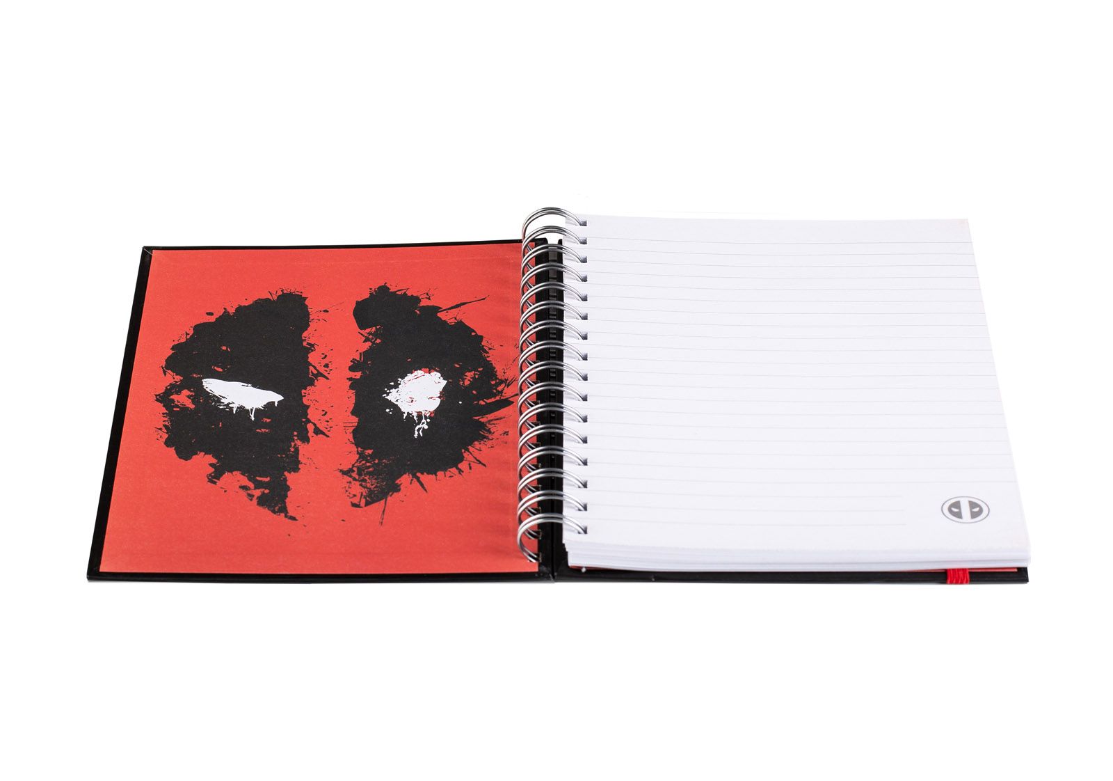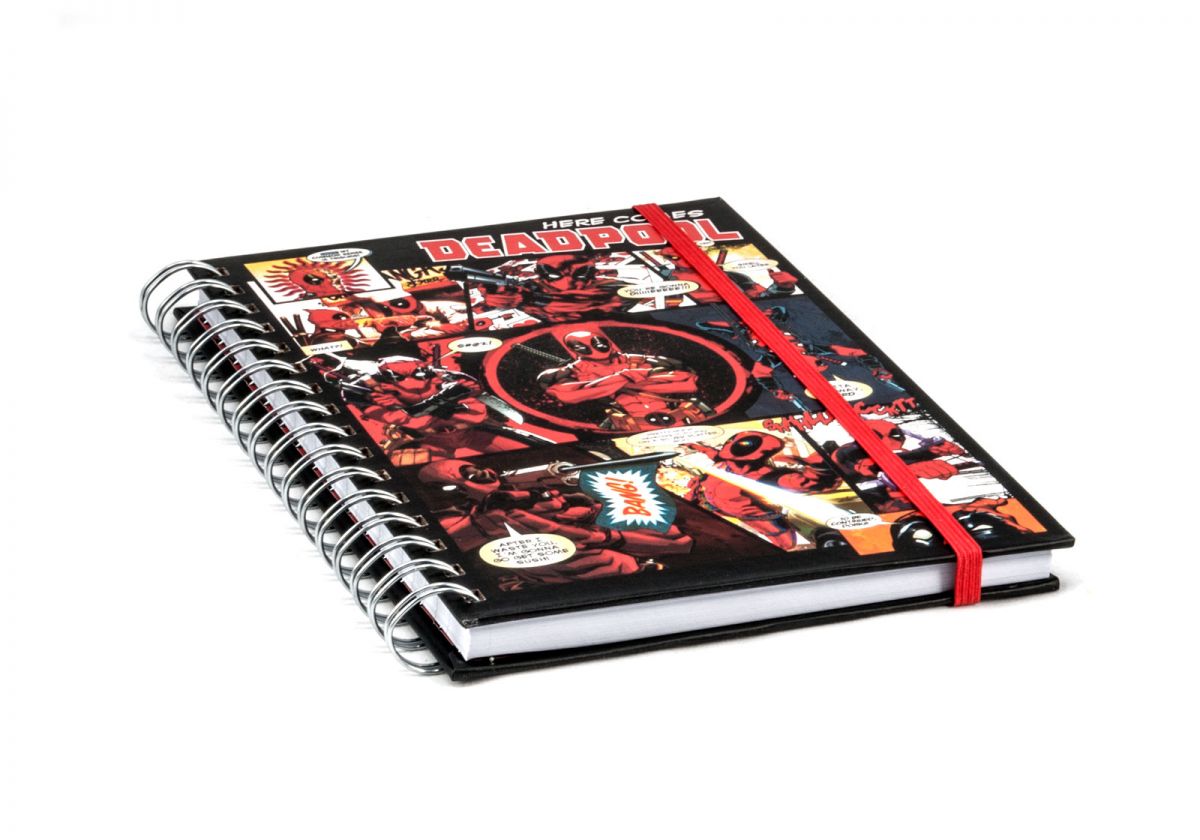 Deadpool notes A5 dla dzieci i młodzieży. Zeszyt z kolekcji Marvela, idealny do notowania lekcji, zadań oraz notatek. Twarda okładka na której przedstawione są obrazki z komiksu Deadpool. Zeszyt posiada 90 kartek w linie, jest zamykany gumką. Gumka jest w kolorze czerwonym. Tasiemka pomaga zaznaczyć ważne miejsce w notesie. Wymiary notesu: 21x15 cm Produkt Oryginalny, posi