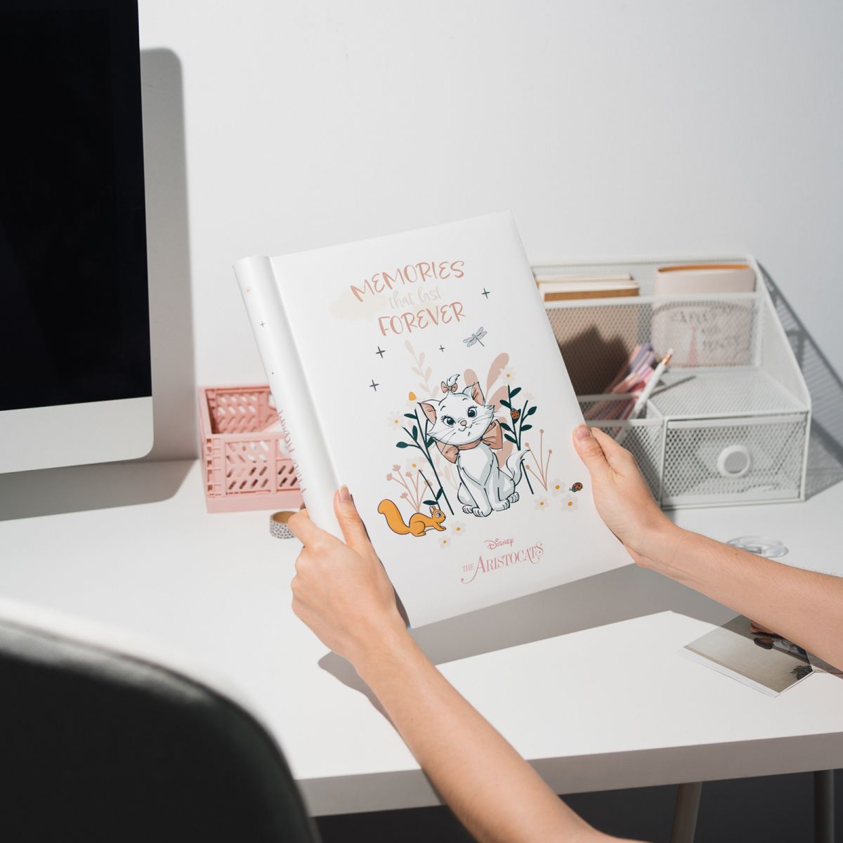 Album na zdjęcia Disney Bonjour Marie Oryginalny album na zdjęcia w twardej okładce. Posiada wyklejone taśmą samoprzylepną strony. Okładka zadrukowana jest kolorową grafiką. Album posiada 30 stron na których możesz umieścić maksymalnie 120 zdjęć. Zobacz możliwe konfiguracje: 120 zdjęć - 4 pionowe 10x15 cm na każdej ze stron, 90 zdjęć - 3 poziome 10x15 cm na każdej ze stron, 60 zdjęć - 2 poziome 13x18 cm na każdej ze stron, 30 zdjęć 1 pionowe 13x18 cm na każdej ze stron, 60 zdjęć - 2 poziome 15x21 cm na każdej ze stron, 30 zdjęć - 1 pionowe 15x21 cm na każdej ze stron, 30 dużych zdjęć do maks. wymiaru 24x32 cm lub INSTAX, POLAROID Szczegóły techniczne: Wymiary zewnętrzne: 26x33 cm Wymiary strony: 24x32 cm Okładka: twarda, papierowa Karty: twarde, papierowe Rodzaj albumu: zdjęcia wklejane Wykończenie albumu: spirala Kolor kart: ecru