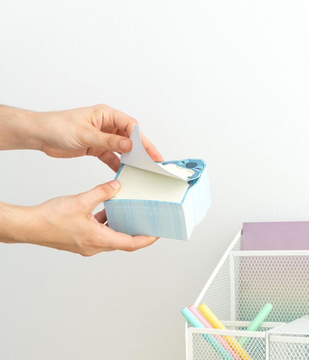 Blok karteczek samoprzylepnych Disney Stitch Dodaj trochę magii Disneya do swojego dnia z naszym uroczym bloczkiem z kartkami Stitcha. Ten praktyczny notatnik z 400 kartkami o gramaturze 90g/m2 jest idealnym towarzyszem dla wszystkich Twoich pomysłów, listów, przypomnień czy krótkich wiadomości. Karteczki posiadają warstwę kleju dzięki czemu możesz umieszczać je w dowolym miejscu. Każda kartka notatnika ozdobiona jest zabawnym wizerunkiem Stitcha, co czyni go nie tylko użytecznym, ale również niezwykle sympatycznym dodatkiem na każde biurko. Jego kompaktowy rozmiar sprawia, że idealnie nadaje się do użytku w domu, szkole czy biurze, a także łatwo zmieści się w każdej torbie czy plecaku. Ten bloczek z kartkami to doskonały prezent dla fanów Stitcha i Disneya w każdym wieku. Nie tylko umili pracę czy naukę, ale także będzie cennym upominkiem dla każdego, kto docenia urok i radość, jaką niesie ze sobą ta kultowa postać. Uwolnij swoją kreatywność i ciesz się każdym zadaniem z naszym bloczkiem z kartkami Stitcha! Wymiary bloczka: 7,5x7,5 cm. Ilość karteczek: 400