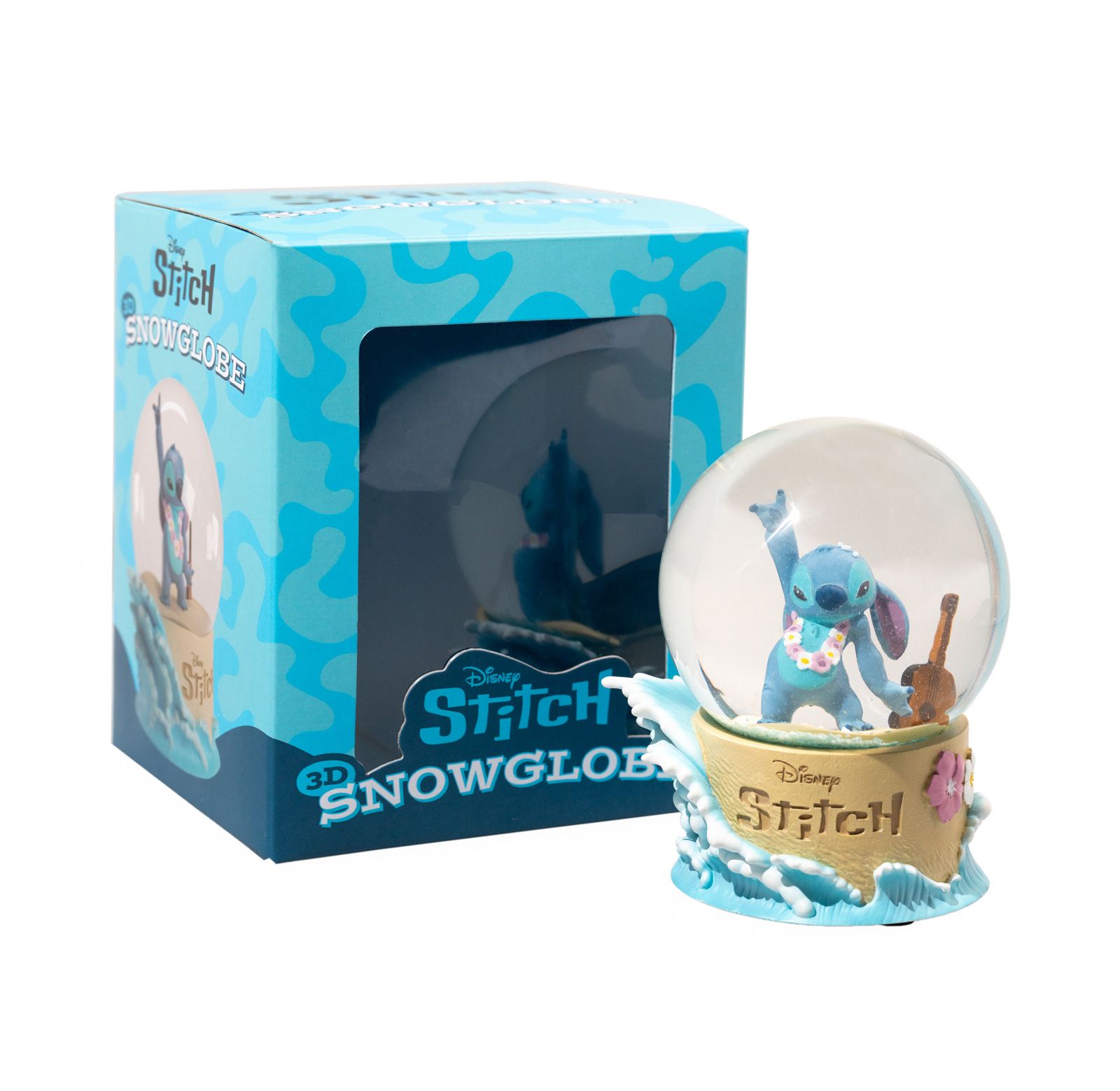 Disney Stitch - kula śnieżna Śnieżna kula z uśmiechniętym Stitchem w hawajskim klimacie. Drobinki wirują wokół, tworząc wrażenie oceanicznych fal. Wspaniała dekoracja dla fanów bajki Lilo i Stitch. Szczegóły techniczne Materiał: żywica, szkło Wymiary: 9x11x8 cm Oficjalna licencja Disney Licencjonowany produkt Oryginalny, licencjonowany produkt, świetny na prezent.