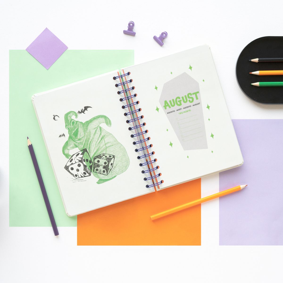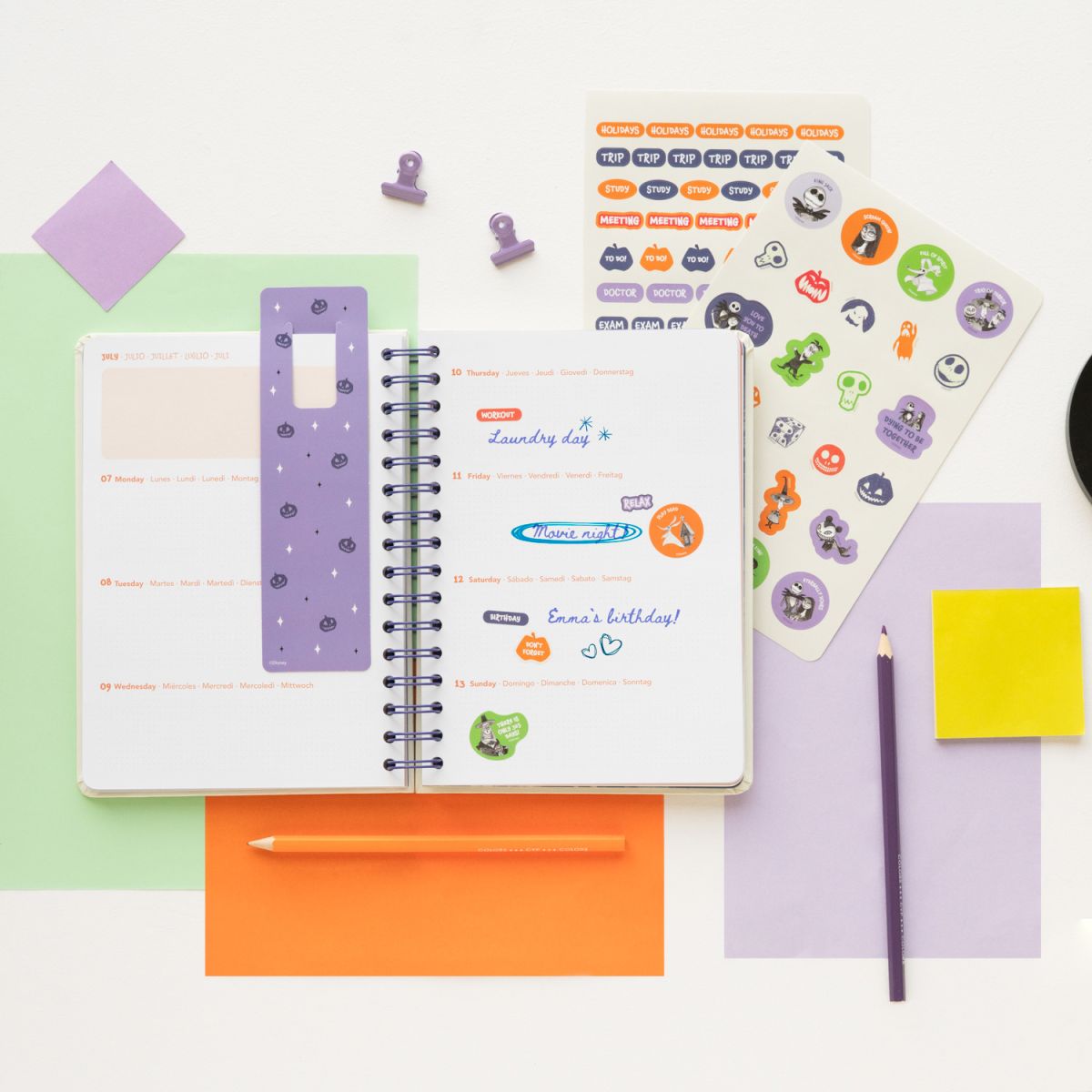 Disney The Nightmare Before Christmas - dziennik kalendarz 2025 Przenieś się do świata "The Nightmare Before Christmas" i zaplanuj swój rok 2025 z Jackiem Skellingtonem oraz resztą bohaterów tego klasycznego filmu. Stylowy dziennik z oryginalnymi ilustracjami sprawdzi się idealnie jako narzędzie do planowania dla każdego fana Tima Burtona. Szczegóły techniczne: Wymiary: 14,8 x 21 cm Kołonotes z gumką 176 stron o gramaturze 100 g/m? 2 strony z personalizowanymi naklejkami Języki: angielski, hiszpański, francuski, włoski, niemiecki Licencjonowany produkt z filmu "The Nightmare Before Christmas". Idealny na prezent dla miłośników mrocznego świata Tima Burtona.