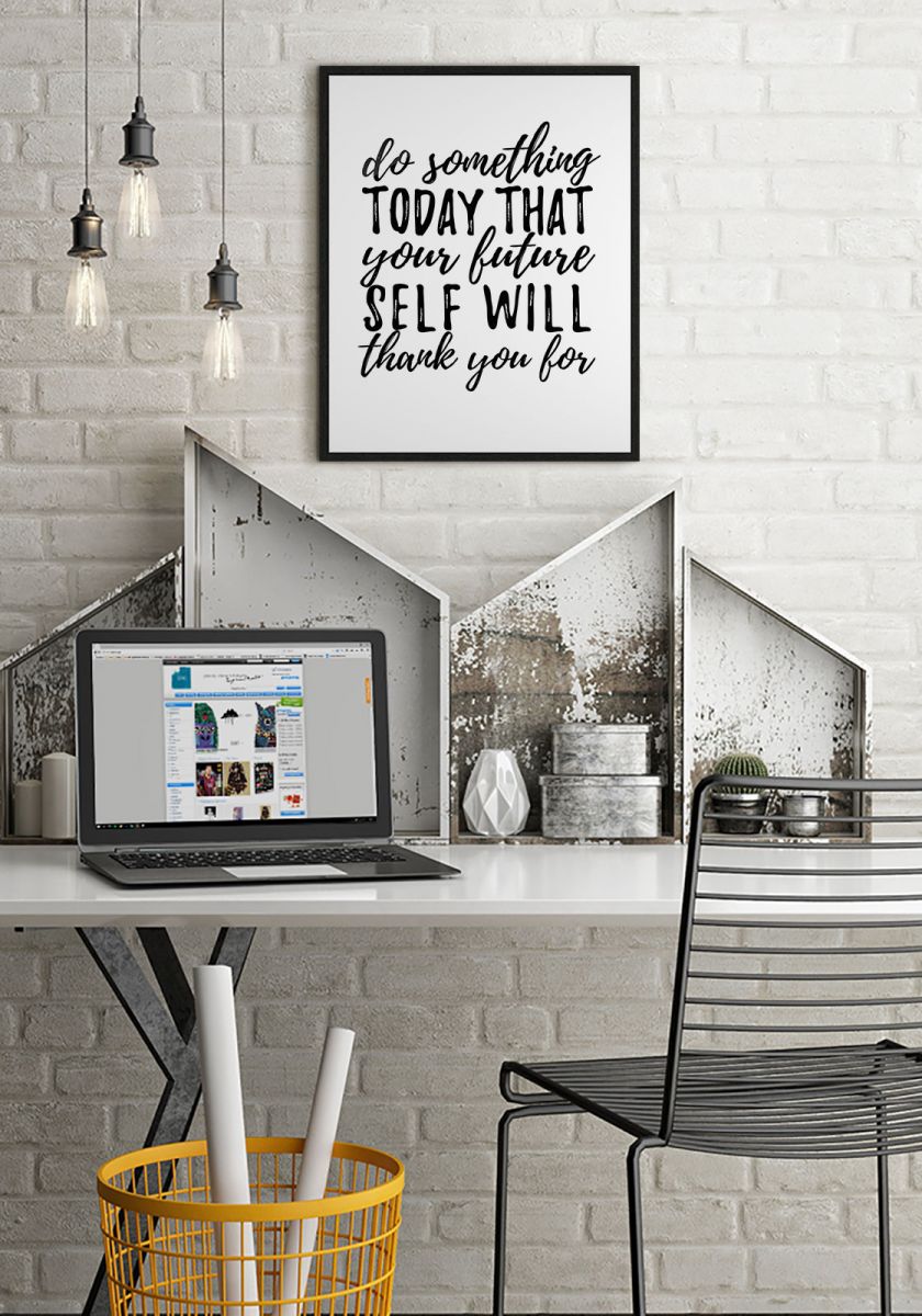 Plakat typograficzny na ścianę, zatytułowany Do Something Today Ciekawy i oryginalny plakat na ścianę. Wyprodukowany na papierze o wysokiej gramaturze w cyfrowej jakości. Plakat wykonany przez polskiego producenta. Świetnie nadaje się do oprawienia w ramy lub antyramy. Specyfikacja papier satynowy 220g/m2 druk cyfrowy wymiary plakatu 21x29,7 cm