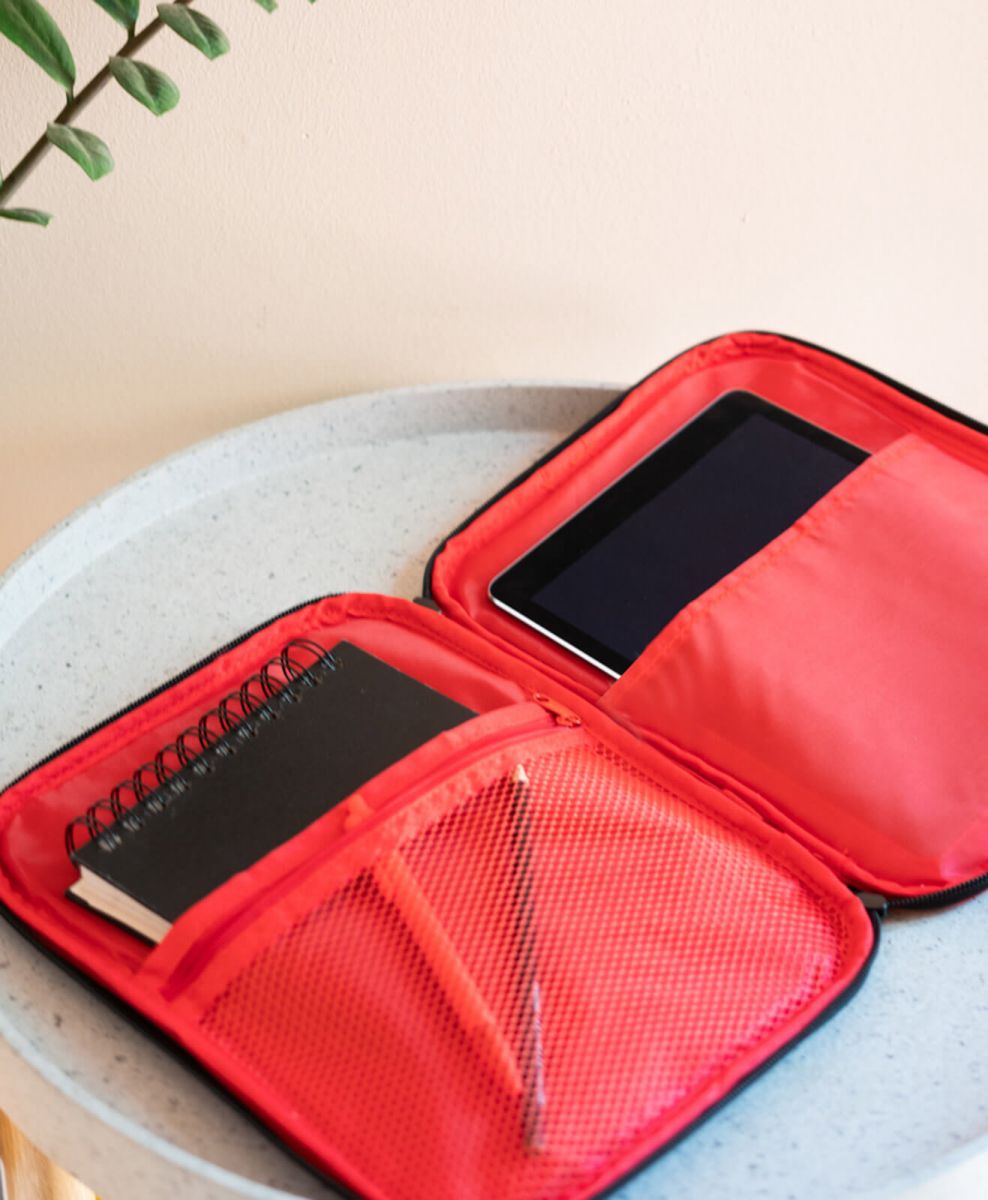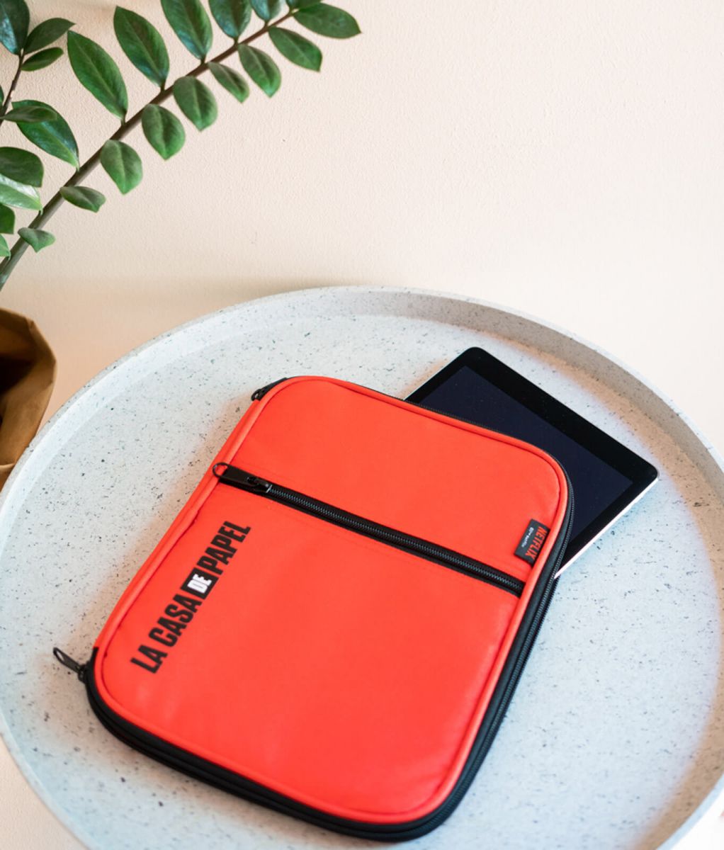 Etui na tablet Dom z Papieru Pokrowiec na tableta z kultowego serialu. Zapobiega tworzeniu sie rys i uszkodzeniom. W bezpieczny sposób możesz przenieść swój sprzęt. Pokrowiec posiada dodatkowe kieszenie zasuwane na zamek. To oficjalny, licencjonowany gadżet z serialu Dom z Papieru. Szczegóły techniczne: Etui ma wymiary: 22 x 2 x 28,5 cm.