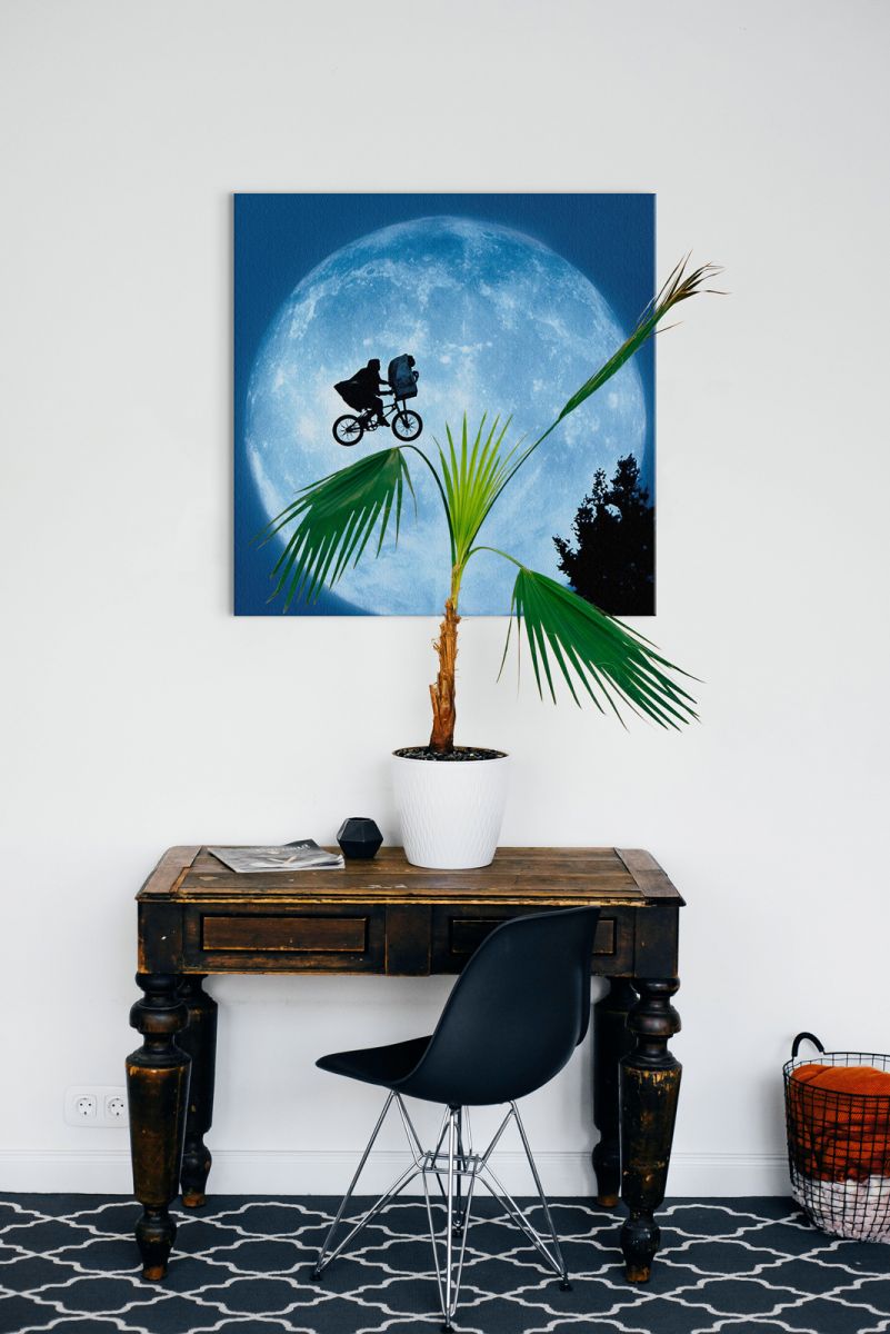 Obraz na ścianę noszący nazwę ET (MOON). Szukasz oryginalnej, ekskluzywnej dekoracji na ścianę? Ten obraz jest dla Ciebie! nasycone kolory i doskonała jakość., obrazy charakteryzuje wysokie nasycenie barw i ostrość, nie sposób oderwać od nich wzrok. Kolory utrzymują się przez długie lata. Mocne bawełniane płótno wygląda naturalnie i oddaje charakter autentyczności obrazu.