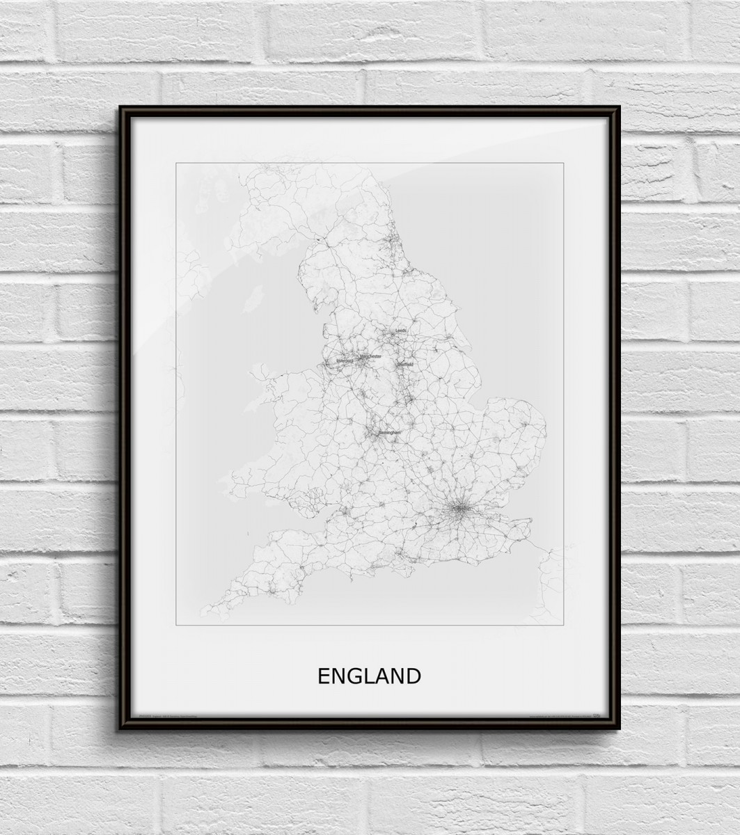 Plakat z mapą na ścianę, zatytułowany England, black&white Ciekawa i oryginalna mapa na ścianę. Wyprodukowany na papierze o wysokiej gramaturze w cyfrowej jakości. Mapy wykonane przez polskiego producenta. Świetnie nadają się do oprawienia w ramy lub antyramy. Specyfikacja papier satynowy 220g/m2 druk cyfrowy wymiary map 40x50 cm