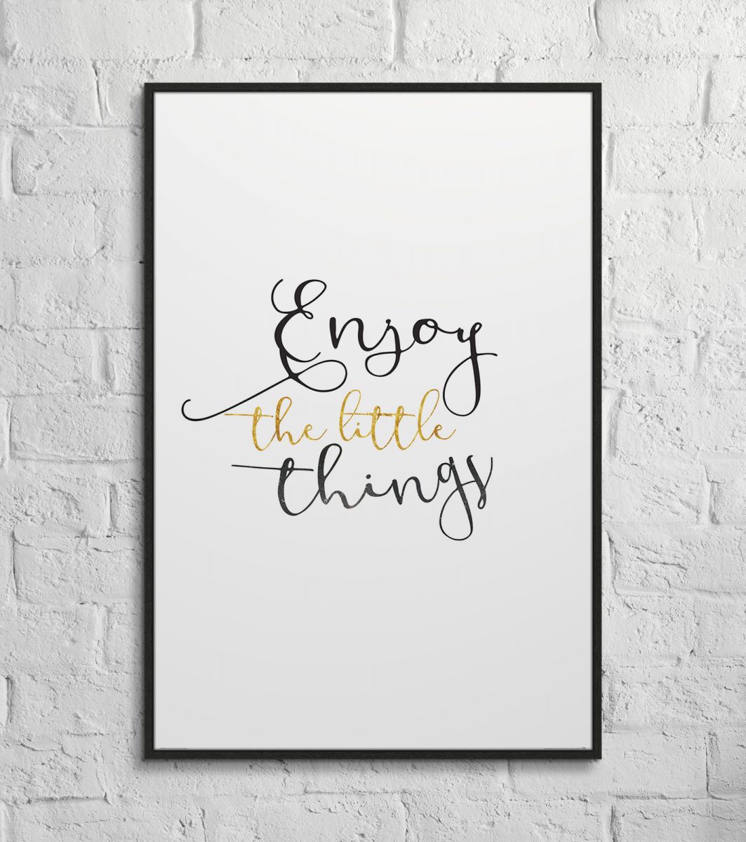Plakat typograficzny na ścianę, zatytułowany Enjoy The Little Things Ciekawy i oryginalny plakat na ścianę. Wyprodukowany na papierze o wysokiej gramaturze w cyfrowej jakości. Plakat wykonany przez polskiego producenta. Świetnie nadaje się do oprawienia w ramy lub antyramy. Specyfikacja papier satynowy 220g/m2 druk cyfrowy wymiary plakatu 61x91,5 cm