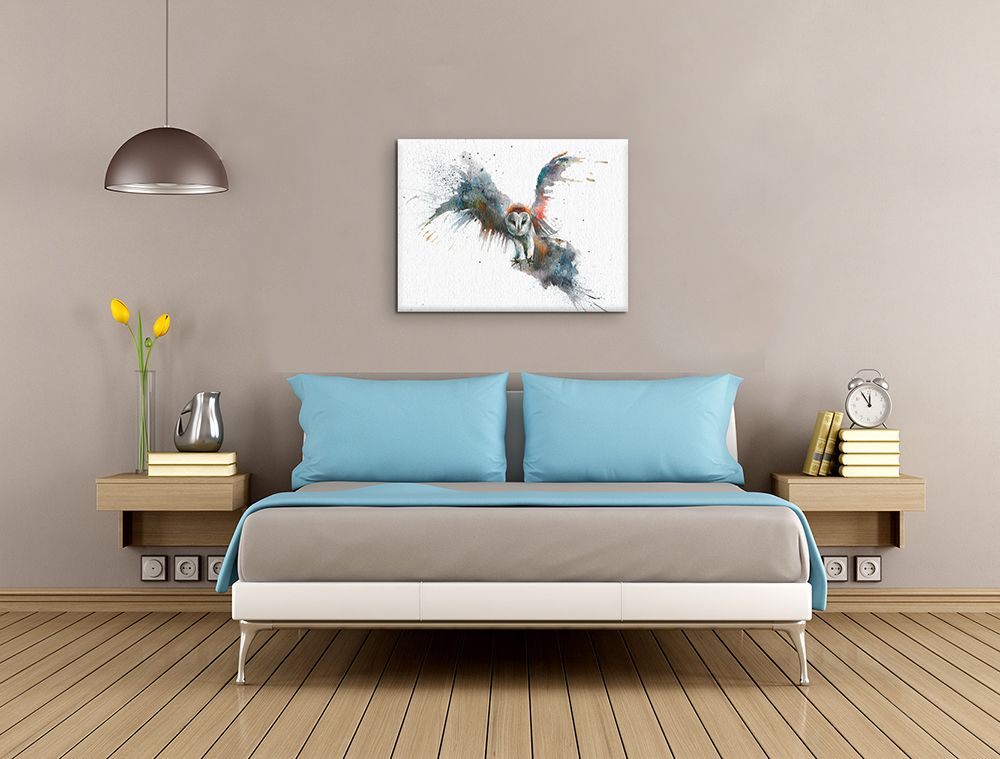 Obraz na ścianę noszący nazwę Eric In Flight. Autorstwa: Sarah Stokes Szukasz oryginalnej, ekskluzywnej dekoracji na ścianę? Ten obraz jest dla Ciebie! trwałe kolory i fantastyczna jakość., obrazy charakteryzuje wysokie nasycenie barw i ostrość, nie sposób oderwać od nich wzrok. Kolory utrzymują się przez długie lata. Mocne bawełniane płótno wygląda naturalnie i oddaje charakter autentyczności obrazu.