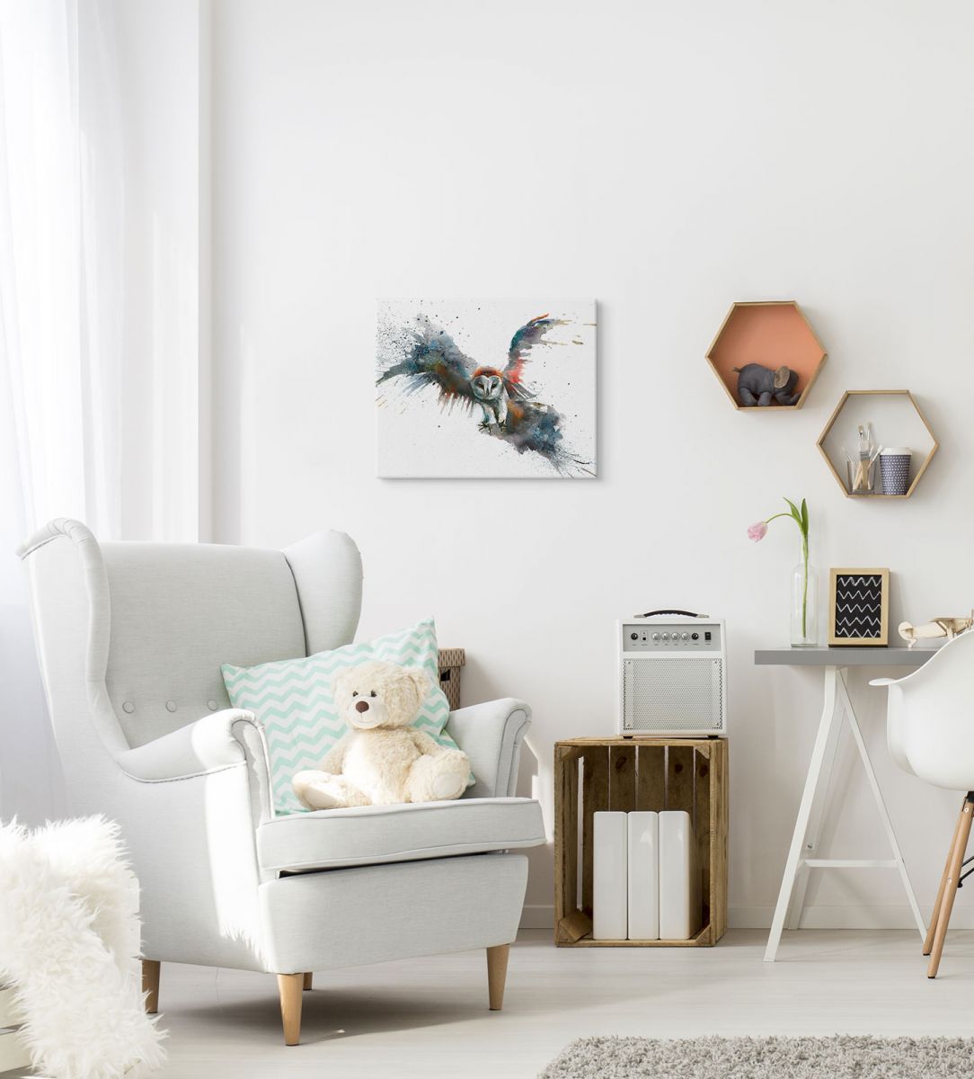 Obraz na ścianę noszący nazwę Eric In Flight. Autorstwa: Sarah Stokes Szukasz oryginalnej, ekskluzywnej dekoracji na ścianę? Ten obraz jest dla Ciebie! wyraziste barwy i doskonała ostrość nadruku., obrazy charakteryzuje wysokie nasycenie barw i ostrość, nie sposób oderwać od nich wzrok. Kolory utrzymują się przez długie lata. Doskonałej jakości płótno to gwarancja naturalnego wyglądu i trwałości obrazu.