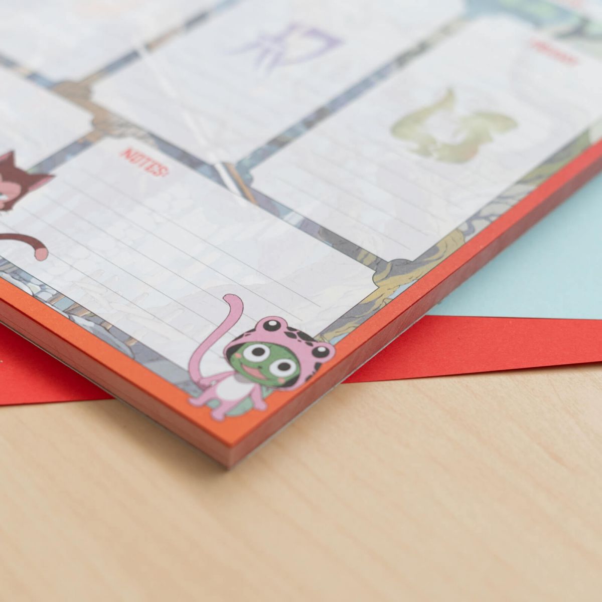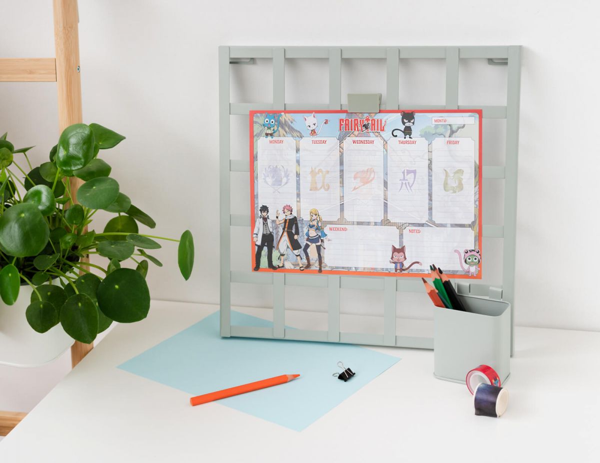 Tygodniowy planer Fairy Tail Planer A4 z ulubionym motywem w któym zaplanujesz cały tydzień. Planer zadrukowany jestkolorowymi grafikamizwiązanymi z głównym motywem. Ma dużo miejsca na notatki na każdy dzień tygodnia. Arkusze są przyklejone na krótkim boku (orientacja pozioma) i nie mają okładki. Tooryginalny produktposiadający licencję producenta. Szczegóły techniczne Wymiary planera:29,7 x 21 cm Marka: Erikgroup