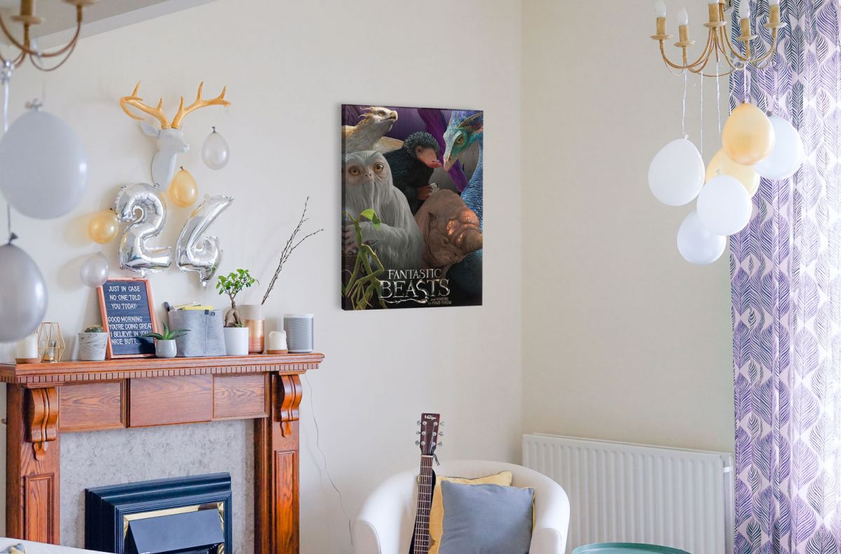 Fantastic Beasts (Escaped Beasts) obraz na płótnie naciągnięty na sosnowe krosna. Obraz jest przygotowany do powieszenia na ścianę od razu po wyjęciu z opakowania. Nasze produkty wykonywane są z dużą starannością oraz dbałością o szczegóły. Obraz posiada zadrukowane boki co gwarantuje estetyczne wykończenie bez konieczności dodatkowego oprawiania go.