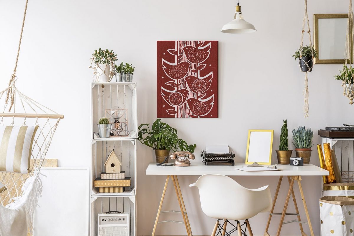 Obraz na ścianę noszący nazwę Five Birds. Autorstwa: Amanda Colville Szukasz oryginalnej, ekskluzywnej dekoracji na ścianę? Ten obraz jest dla Ciebie! nasycone kolory i doskonała jakość., obrazy charakteryzuje wysokie nasycenie barw i ostrość, nie sposób oderwać od nich wzrok. Kolory utrzymują się przez długie lata. Mocne bawełniane płótno wygląda naturalnie i oddaje charakter autentyczności obrazu.