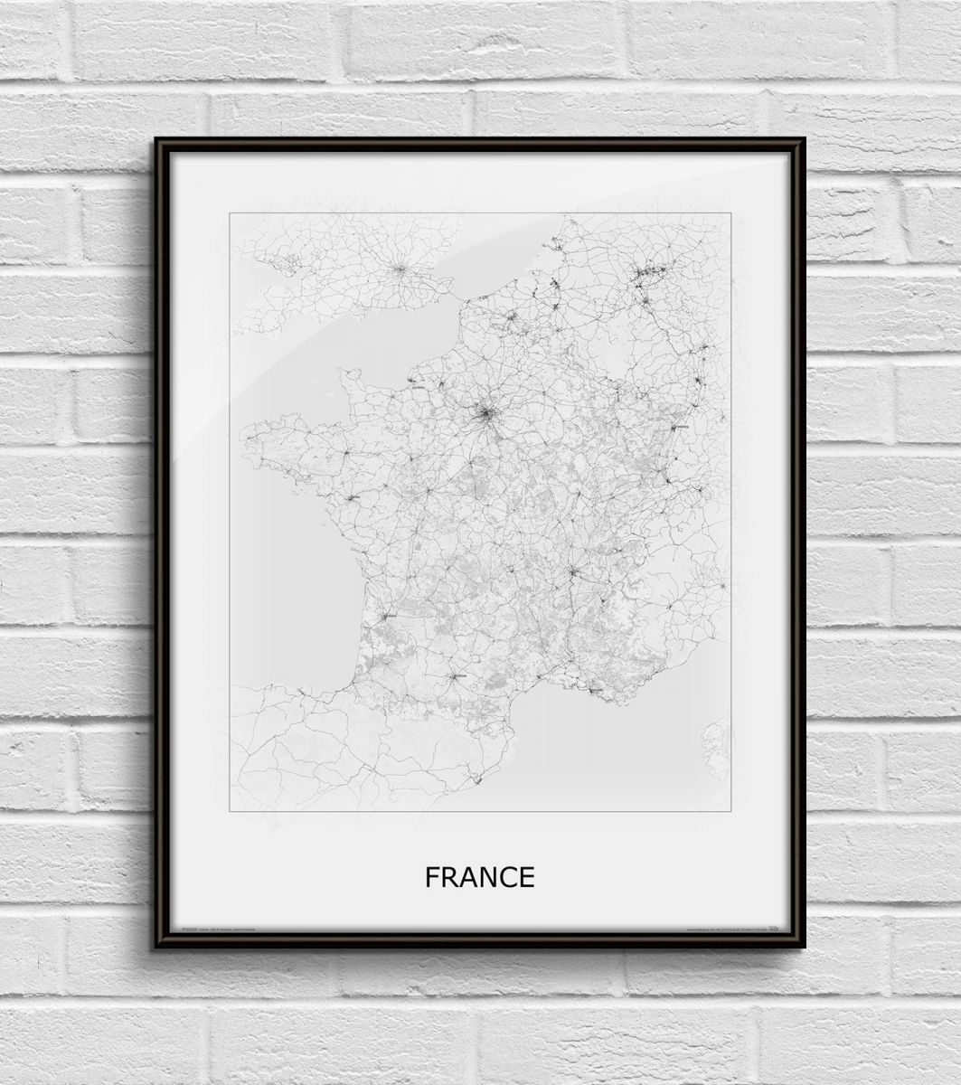 Plakat z mapą na ścianę, zatytułowany France, black&white Ciekawa i oryginalna mapa na ścianę. Wyprodukowany na papierze o wysokiej gramaturze w cyfrowej jakości. Mapy wykonane przez polskiego producenta. Świetnie nadają się do oprawienia w ramy lub antyramy. Specyfikacja papier satynowy 220g/m2 druk cyfrowy wymiary map 40x50 cm