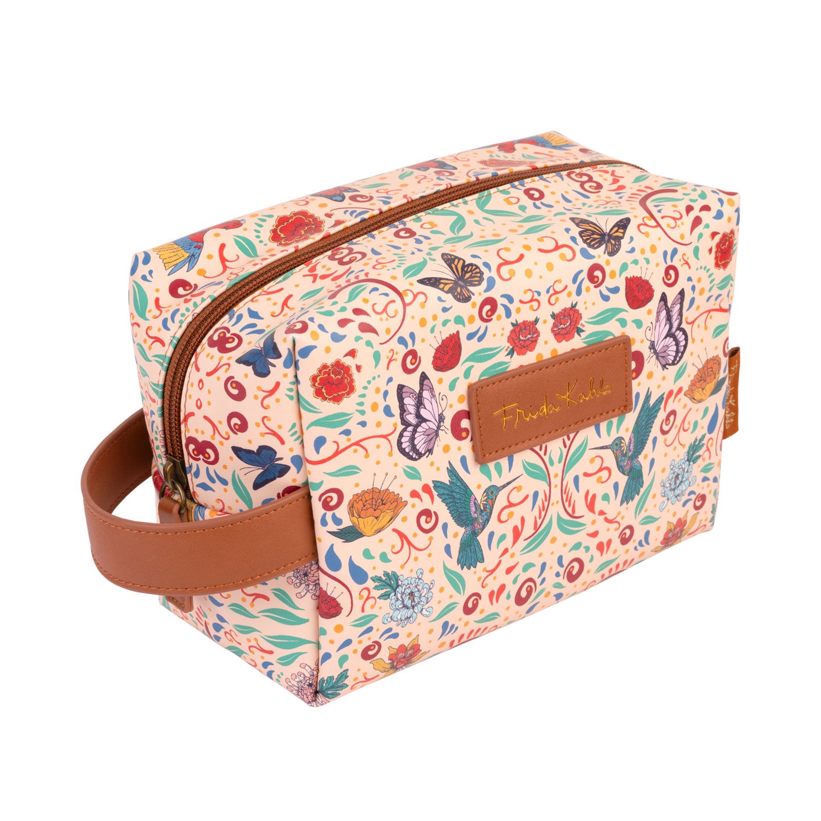 Kosmetyczka Frida Kahlo Inspiruj się każdego dnia z kosmetyczką Frida Kahlo, która jest zarówno praktyczna, jak i pełna stylu. Dzięki wytrzymałej tkaninie i kolorowemu wzorowi inspirowanemu sztuką Fridy Kahlo, przechowywanie kosmetyków staje się przyjemnością. Kosmetyczka wyposażona jest w solidny zamek błyskawiczny oraz praktyczny uchwyt boczny, co ułatwia jej przenoszenie. Idealna do używania w domu, w podróży czy jako stylowy dodatek do torebki. Posiada oficjalną licencję producenta, to oryginalny gadżet! Wymiary kosmetyczki: 20x25x9,5 cm Materiał: poliester