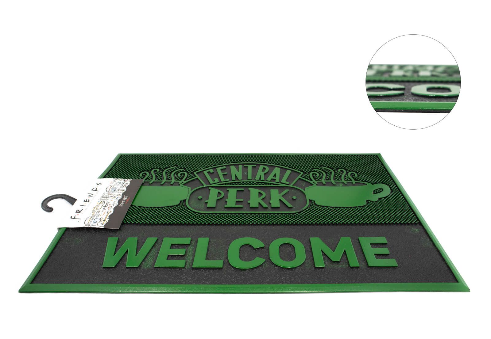 Gumowa wycieraczka Friends Central Perk Z naszą wycieraczką zachowasz czystość w domu i zaskoczysz znajomych już przy wejściu. Wycieraczka z oryginalnym motywem to nie tylko przydatny gadżet, ale też świetna ozdoba mieszkania. Wykonana jest z gumy, dzięki czemu nie ślizga się i z łatwością wytrzesz brudne buty. Jest oryginalna, to oficjalne, licencjonowane wydanie. Rozmiar wycieraczki: 40x60 cm. Wysokość: 1,5 cm.