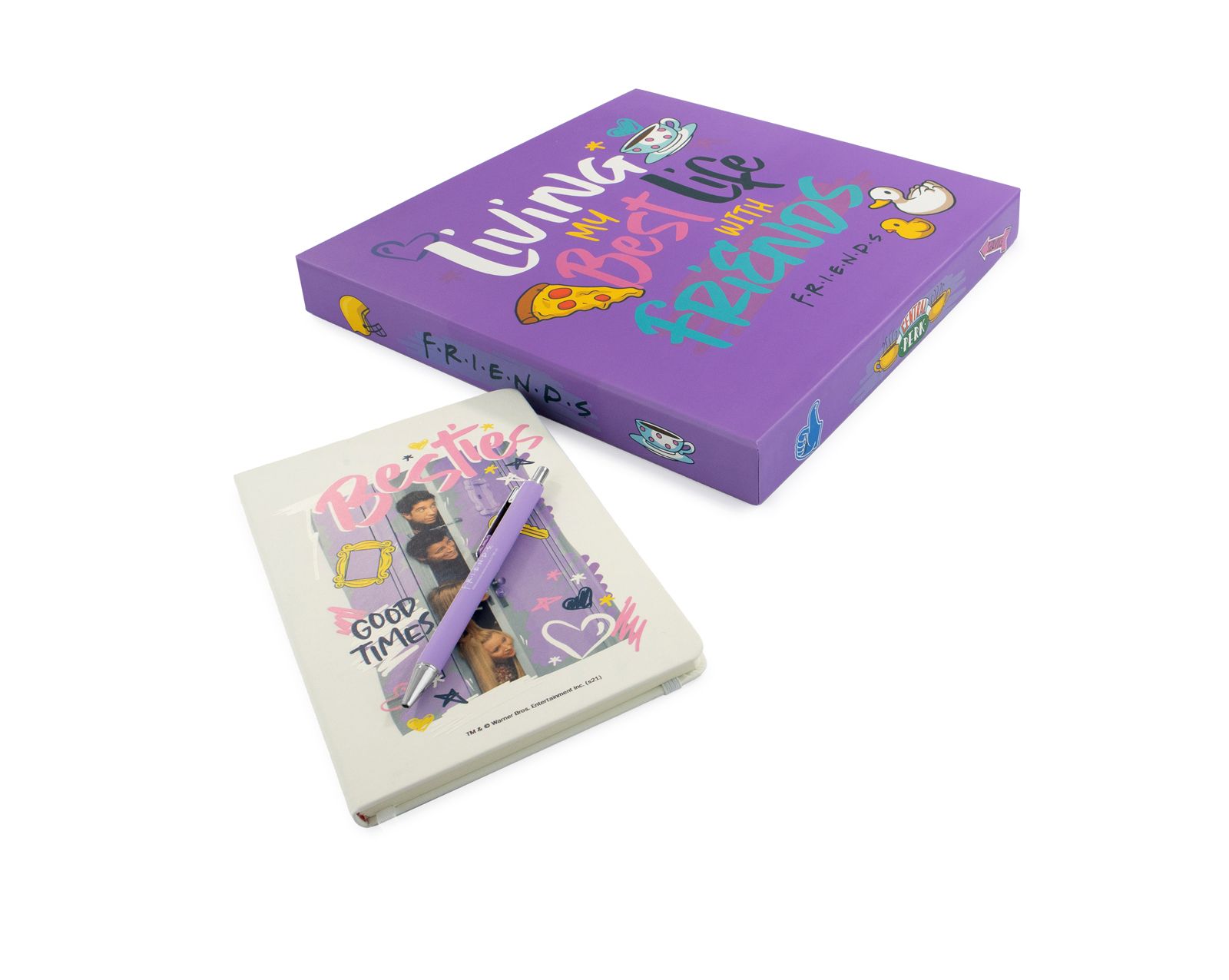 iends - zestaw na prezent notes i długopis Zestaw na prezent dla fanów kultowego serialu "Friends", zawierający stylowy notes oraz długopis z motywem Central Perk.