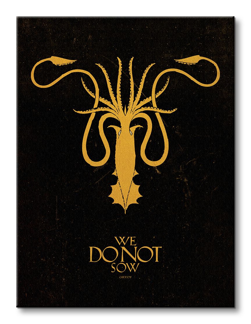 Obraz na ścianę noszący nazwę Game of Thrones (Greyjoy). Autorstwa: nieznany Szukasz oryginalnego obrazu na ścianę? Wybierz jeden z naszej kolekcji! fantastyczne kolory i rewelacyjna ostrość., obrazy charakteryzuje wysokie nasycenie barw i ostrość, nie sposób oderwać od nich wzrok. Obrazy są ostre a ich barwy maksymalnie nasycone co gwarantuje genialny efekt na ścianie. Bawełniane płótno wysokiej jakości gwarantuje świetne odwzorowanie i trwałość obrazu.