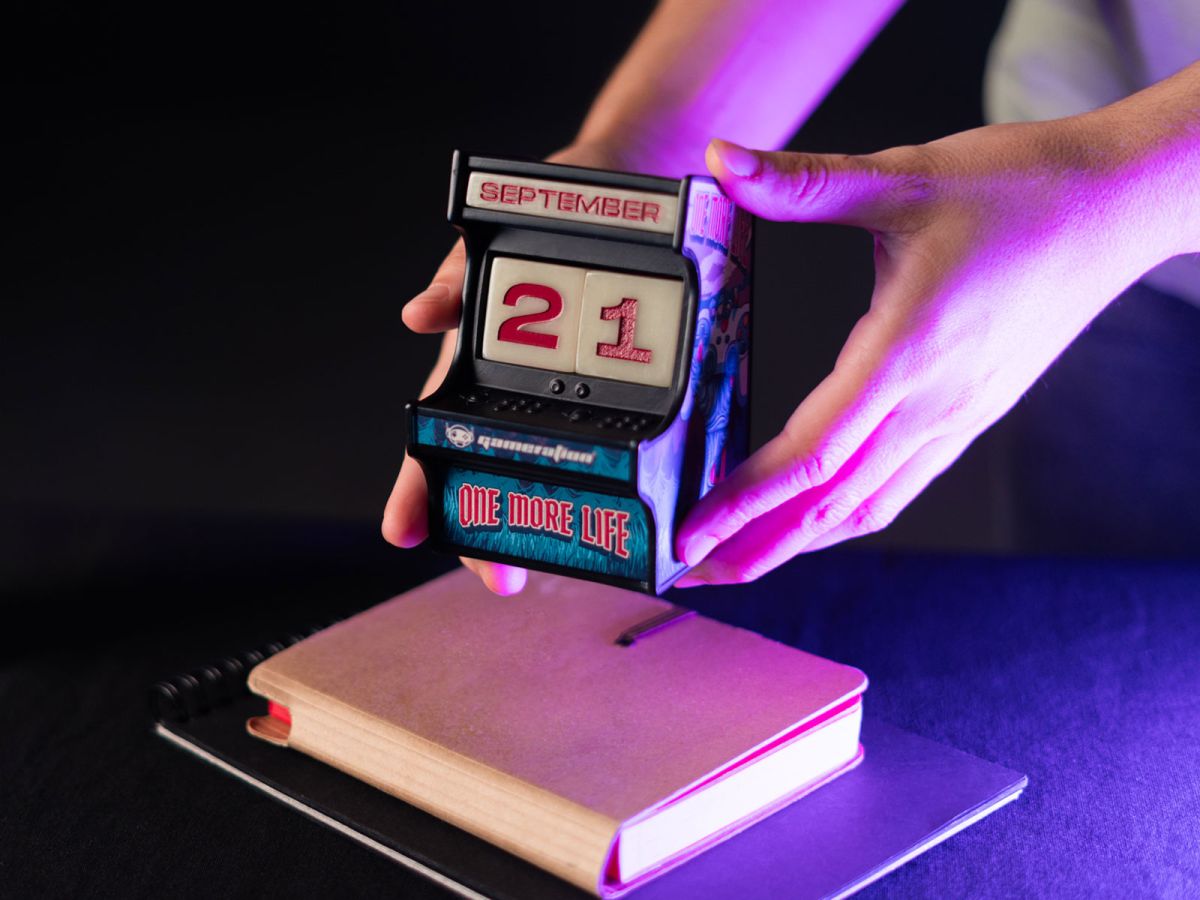 Wieczny kalendarz 3D Gameration Arcade Dodaj wyjątkowego charakteru swojemu biurku z wiecznym kalendarzem 3D. Wykonany z trwałej żywicy, ten kalendarz łączy funkcjonalność z estetyką. Posiada 5 bloków z dniami i miesiącami, które można dowolnie wymieniać, umożliwiając konfigurację wszystkich dat w roku. Luminescencyjne klocki świecą w ciemności po pochłonięciu światła naturalnego lub UV, co czyni go praktycznym i dekoracyjnym dodatkiem. Idealny jako element wystroju biura lub prezent dla entuzjastów nowoczesnych gadżetów. Specyfikacje produktu: Materiał: żywica Wymiary: 75 x 115 x 75 mm Cechy dodatkowe: luminescencyjne klocki Zawartość: 4 wymienne bloczki z dniami i miesiącami Licencja i oryginalność Produkt posiada licencję producenta. Kupując w naszym sklepie, masz pewność, że otrzymujesz oryginalny produkt wspierający twórców.