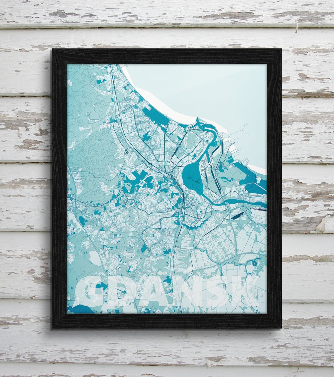 Artystyczna mapa na ścianę, zatytułowana Gdańsk - Błękitna mapa Ciekawy i oryginalny plakat na ścianę. Wyprodukowany na papierze o wysokiej gramaturze w cyfrowej jakości. Plakat wykonany przez polskiego producenta. Świetnie nadaje się do oprawienia w ramy lub antyramy. Specyfikacja papier satynowy 220g/m2 druk cyfrowy wymiary plakatu 40x50 cm