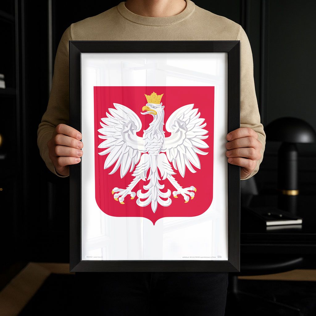 Plakat na ścianę Godło Polski A3 Wyrazista, zgodna z tradycją prezentacja symbolu narodowego w formacie A3. Dokładny druk i nasycone czerwienie z bielą zapewniają elegancki efekt w biurze, instytucji i domu. Plakat tworzy uporządkowany, reprezentacyjny punkt kompozycji ściennej. Idealny do oprawy w proste, czarne lub drewniane ramy.