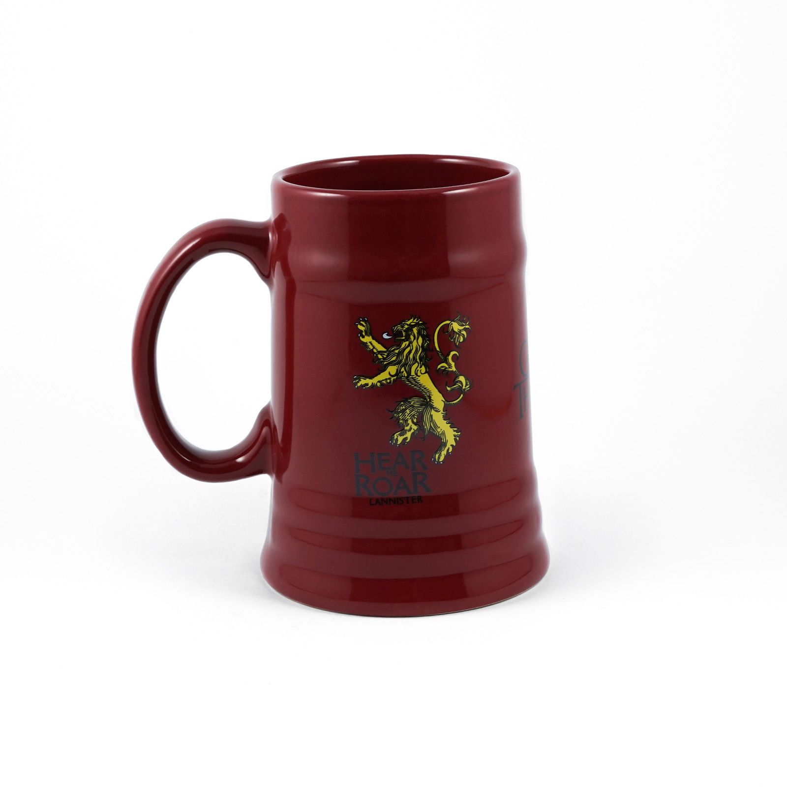 Kufel Ceramiczny Gra o Tron - Herb Lannisterówów Kufel z ulubionym motywem to idealny pomysł na urozmaicenie kuchennej zastawy, oraz świetny pomysł na prezent dla bliskiej osoby. Nasz produkt jest markowy, posiada oryginalną licencję Jest stworzony z najwyższej jakości porcelany, to gwarancja koloru o wysokim połysku Grafika na kuflu jest trwała, w cyfrowej jakości Można myć go w zmywarce i podgrzewać w mikrofalówce Szczegóły techniczne: Pojemność: 595 ml Marka: Pyramid Posters