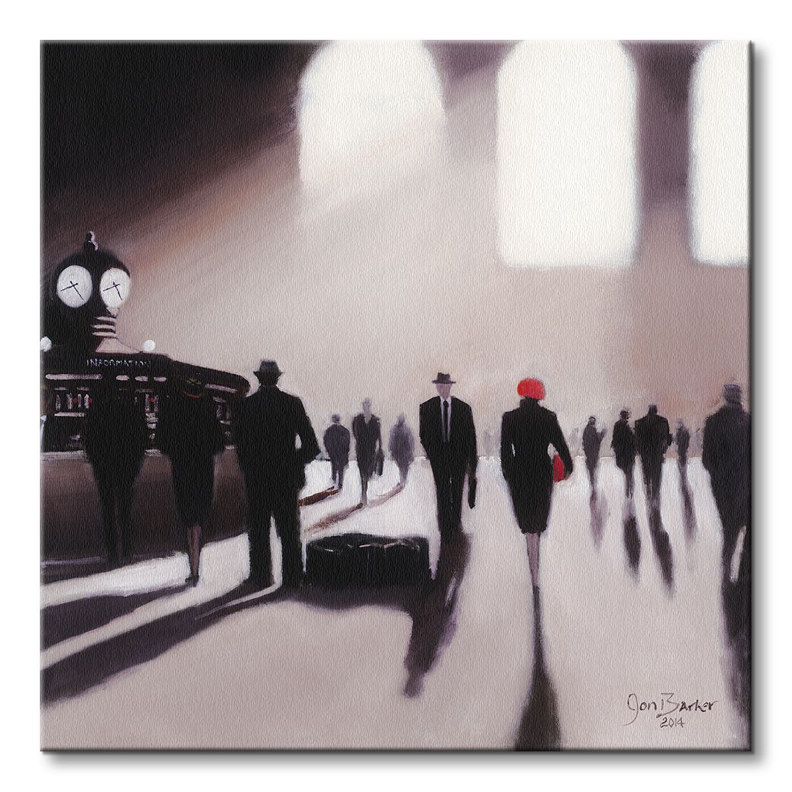 Obraz na ścianę noszący nazwę Grand Central Station Rendezvous - New York. Autorstwa: Jon Barker Szukasz oryginalnej, ekskluzywnej dekoracji na ścianę? Ten obraz jest dla Ciebie! trwałe kolory i fantastyczna jakość., obrazy charakteryzuje wysokie nasycenie barw i ostrość, nie sposób oderwać od nich wzrok. Kolory utrzymują się przez długie lata. Mocne bawełniane płótno wygląda naturalnie i oddaje charakter autentyczności obrazu.